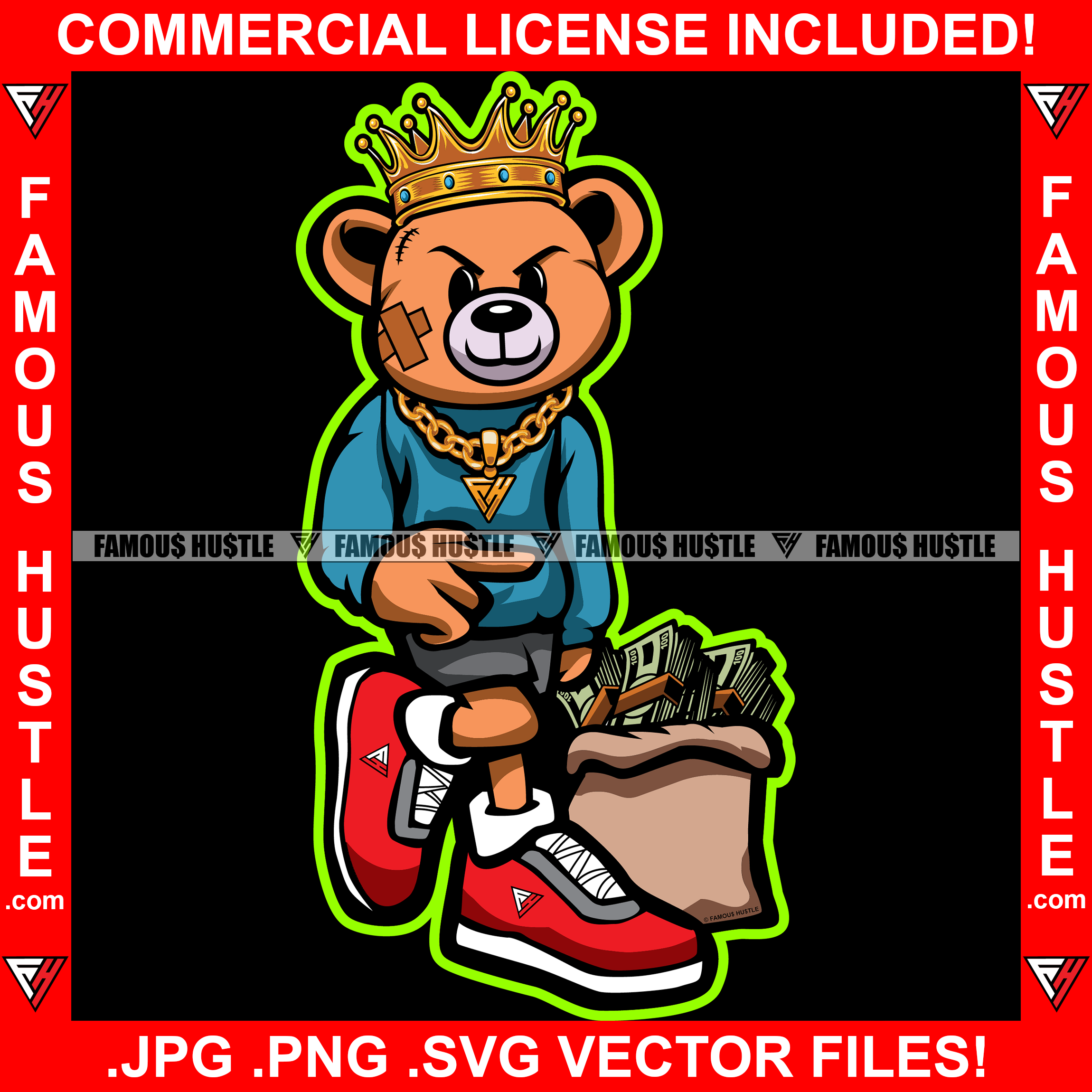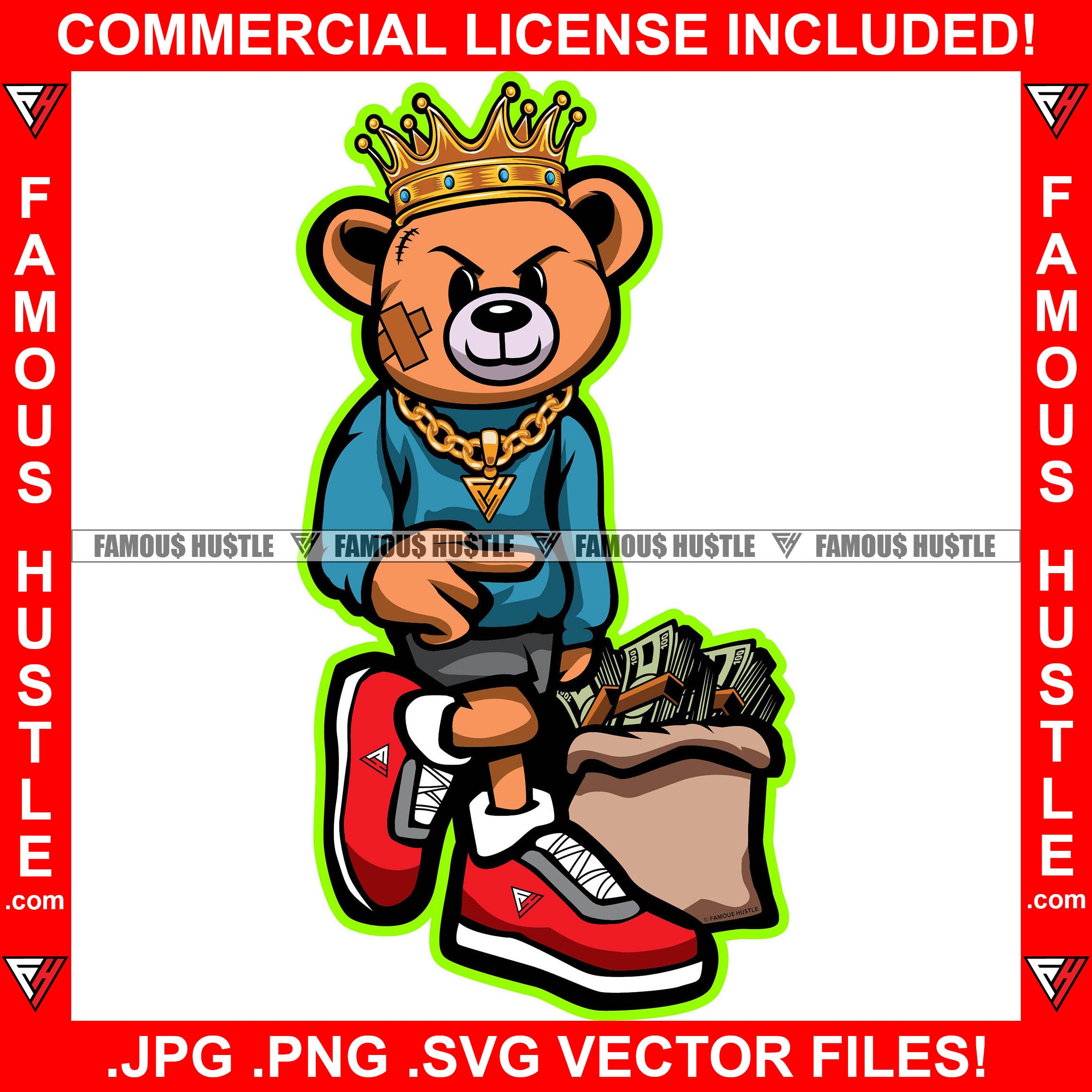 Cash On My Mind King Gangster Teddy Bear Scar Face Gold Jewelry Mean Face Money Bags Hip Hop Rap Plug Trap Hood Ghetto Swag Thug Hustler Hustling Famous Hustle Baller Trapper Art Graphic Design Logo T-Shirt Print Printing JPG PNG SVG Vector Cut File