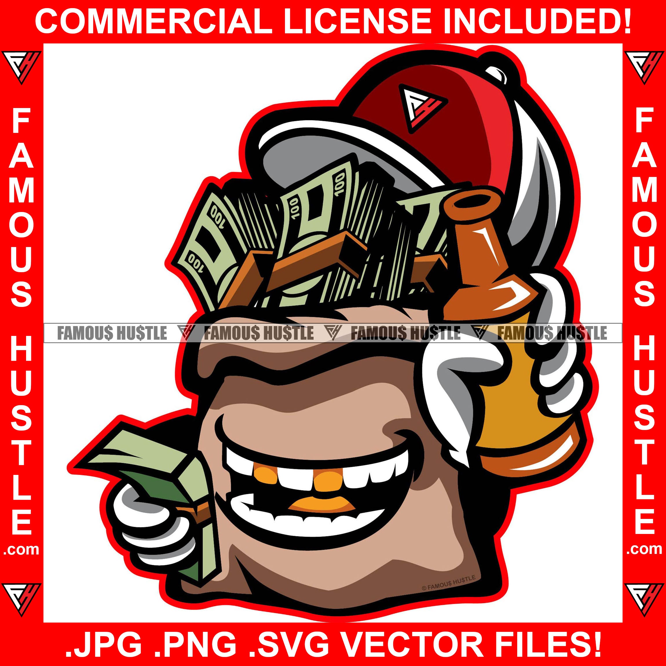 Cash Only Money Bag Cartoon Character Cap Bottle Bundles Gold Teeth Hip Hop Rap Rapper Plug Trap Street Hood Ghetto Swag Thug Hustler Hustling Famous Hustle Baller Trapper Art Graphic Design Logo T-Shirt Print Printing JPG PNG SVG Vector Cut File