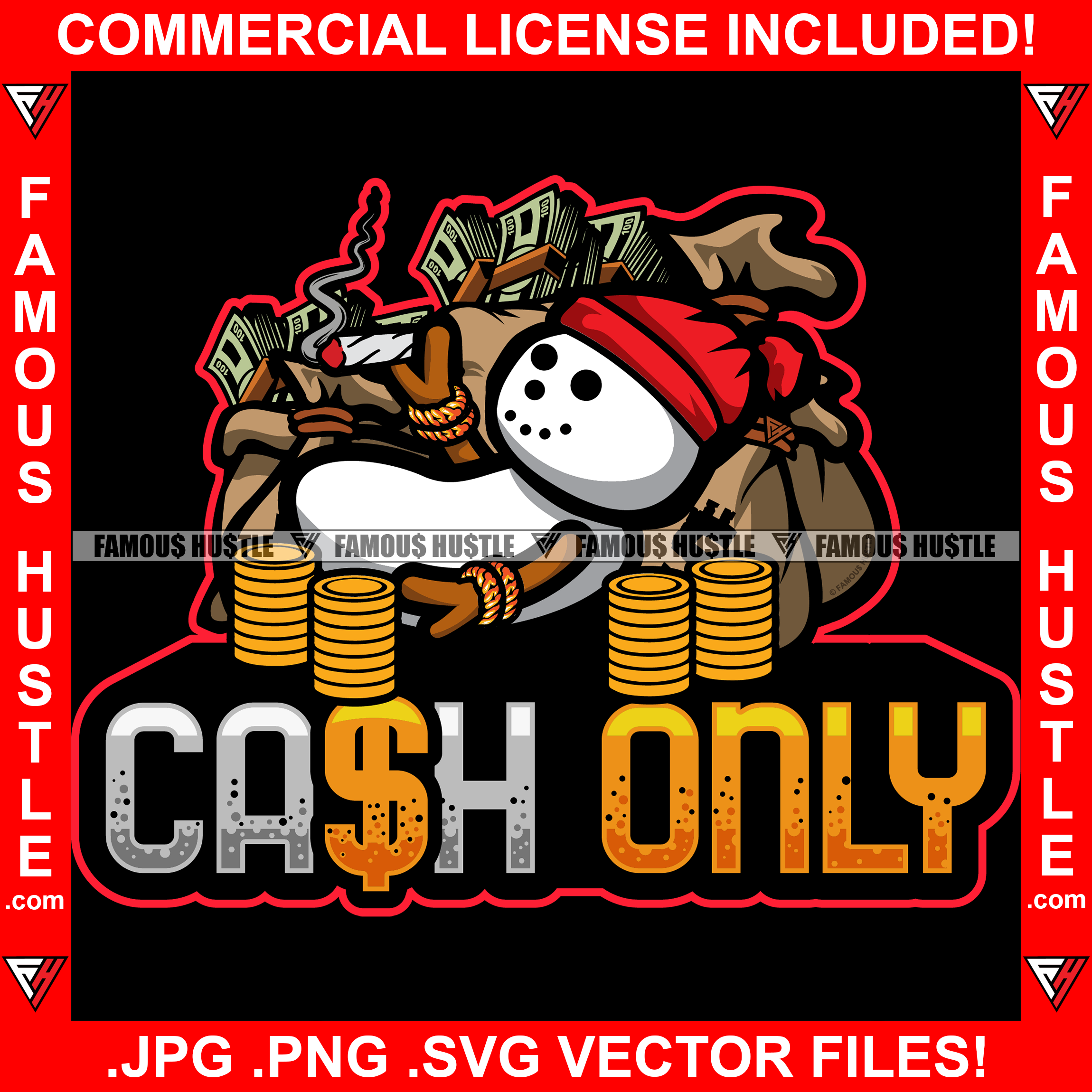 Cash Only Snowman Cash Money Bags Gold Coins Stack Cigar Smoking Red Cap Christmas Day Hip Hop Rap Plug Street Hood Ghetto Swag Thug Hustler Hustling Famous Hustle Quote Art Graphic Design Logo T-Shirt Print Printing JPG PNG SVG Vector Cut File