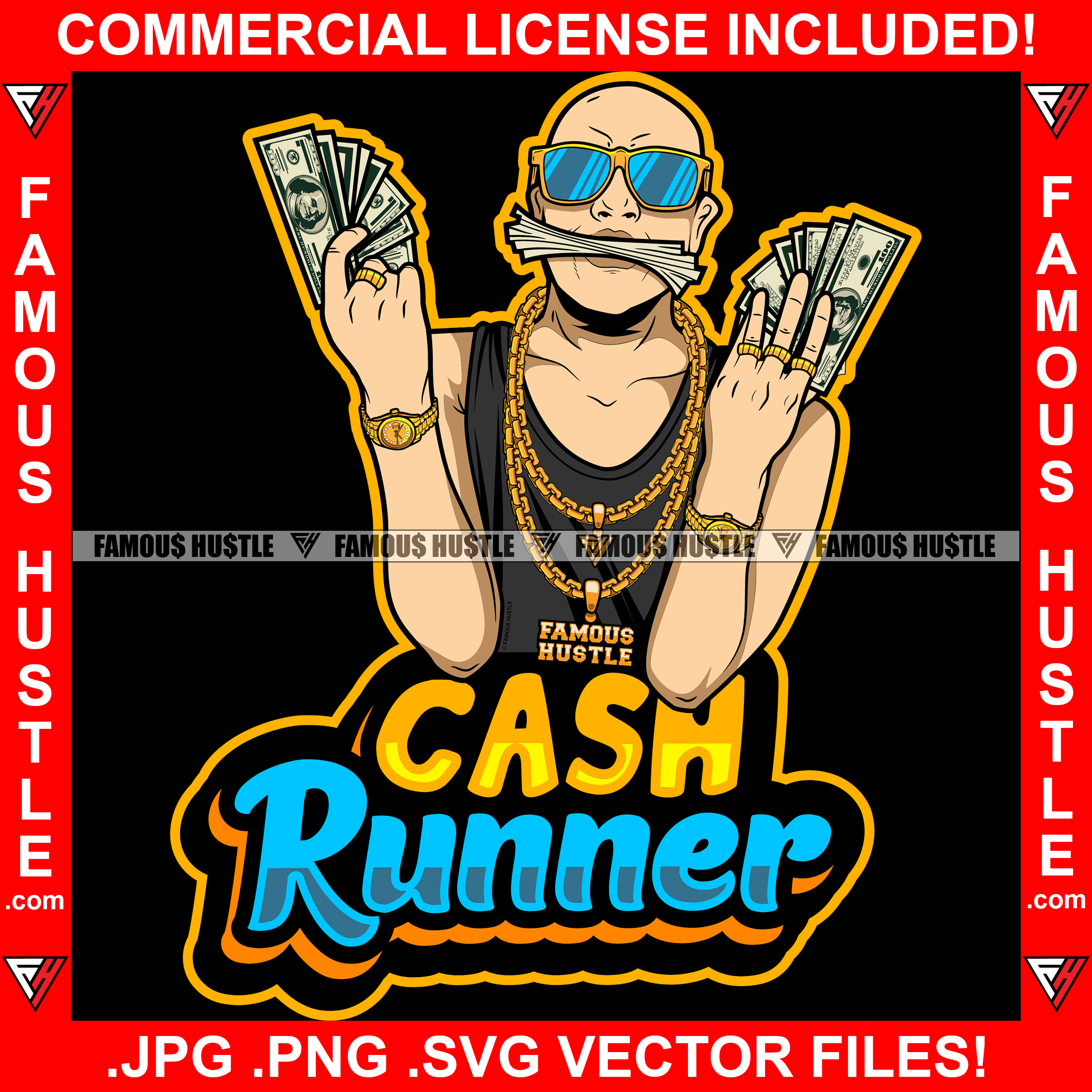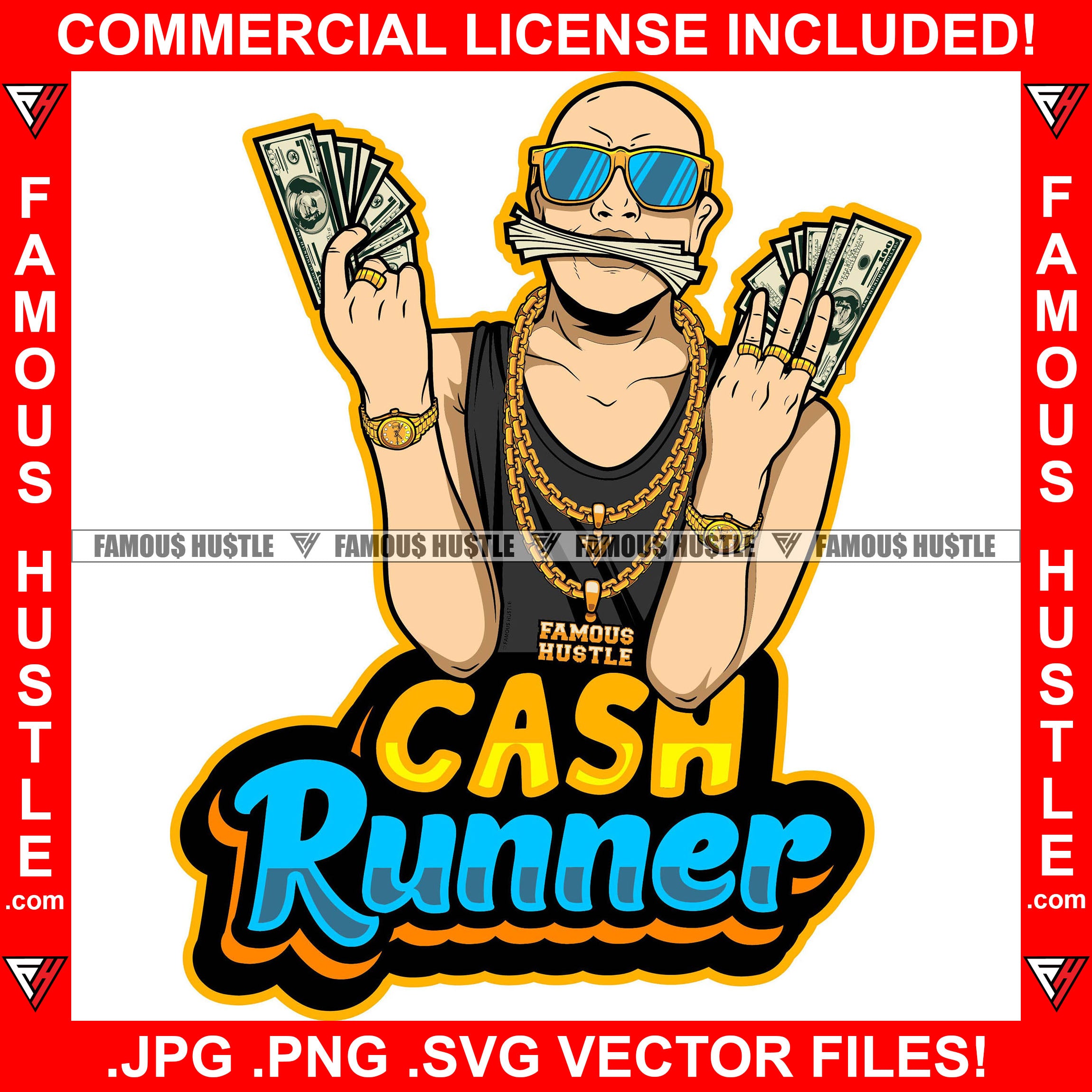 Cash Runner Gangster Bald Man Gold Glasses Jewelry Necklace Eating Money Bundles Hip Hop Rap Plug Trap Street Hood Ghetto Swag Thug Hustling Famous Hustle Baller Trapper Quote Art Graphic Design Logo T-Shirt Print Printing JPG PNG SVG Vector Cut File