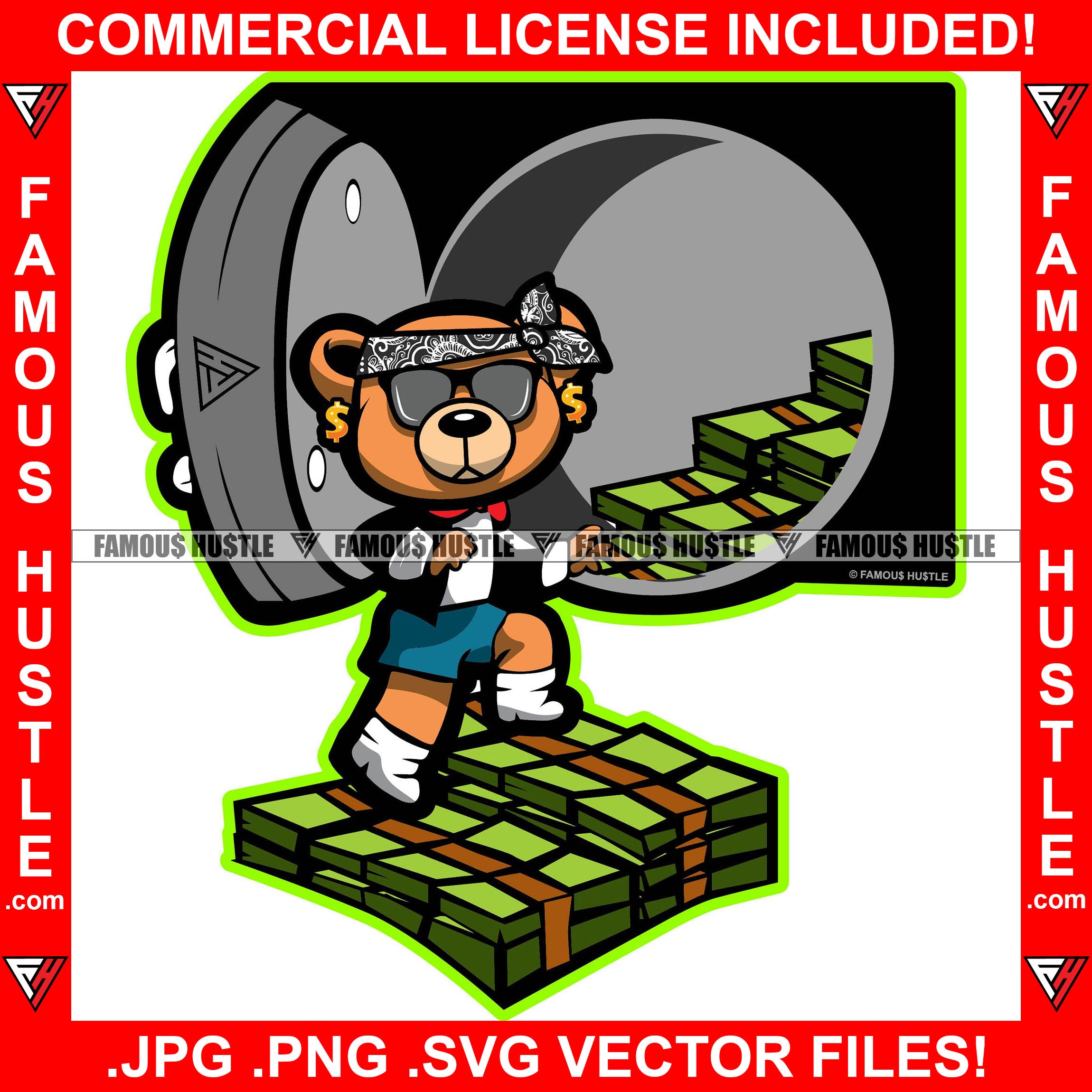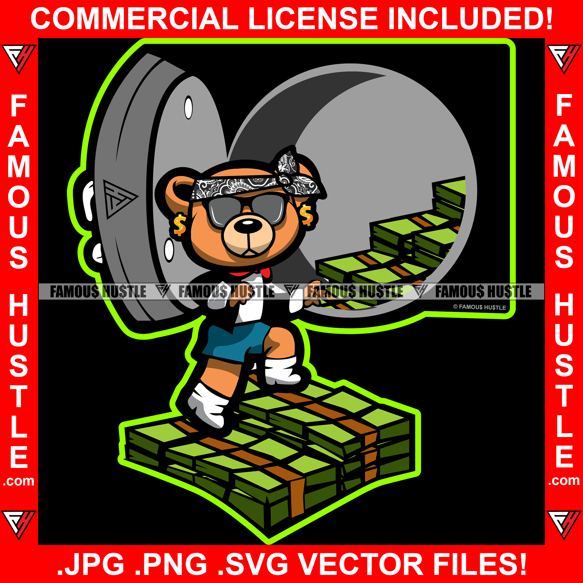 Famous Hustle Gangster Robbery Cash Money Bundle Stairs From Locker Safe Head Bandanna SunglassesGold Jewelry Hip Hop Rap Hustler Hustling Art Graphic Design Logo T-Shirt Print Printing JPG PNG SVG Vector Cut File