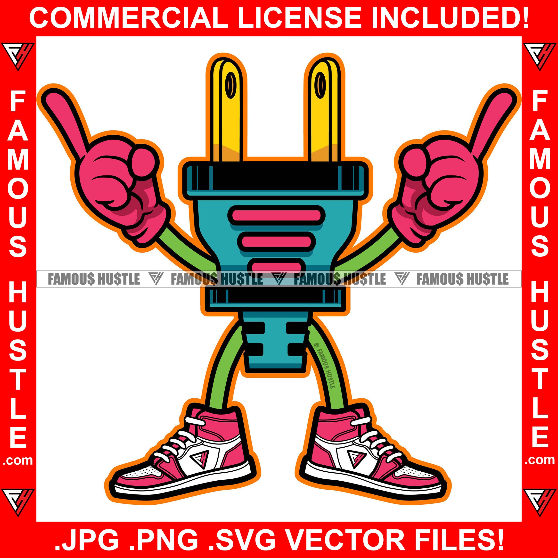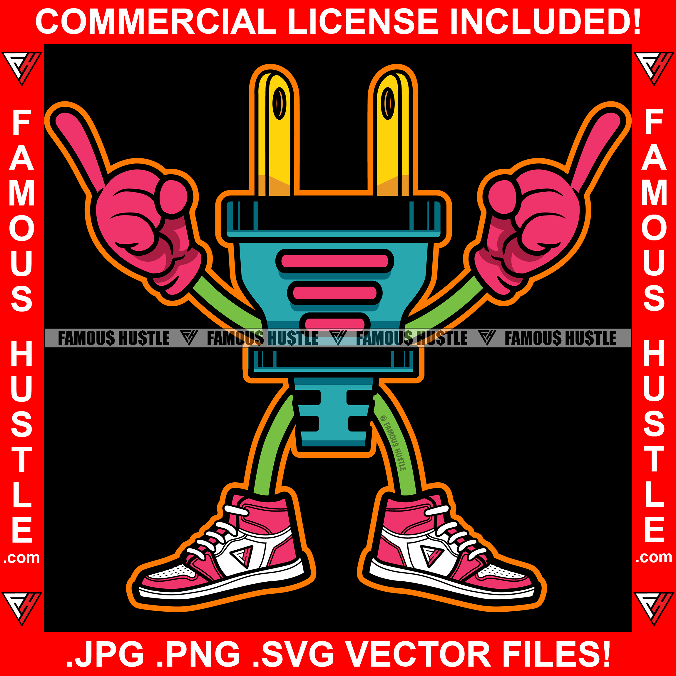 Famous Hustle Gold Electrical Plug Socket Cartoon Character Pink Sneakers Gloves Hip Hop Rap Rapper Plug Trap Street Hood Ghetto Swag Thug Hustler Hustling Baller Trapper Art Graphic Design Logo T-Shirt Print Printing JPG PNG SVG Vector Cut File