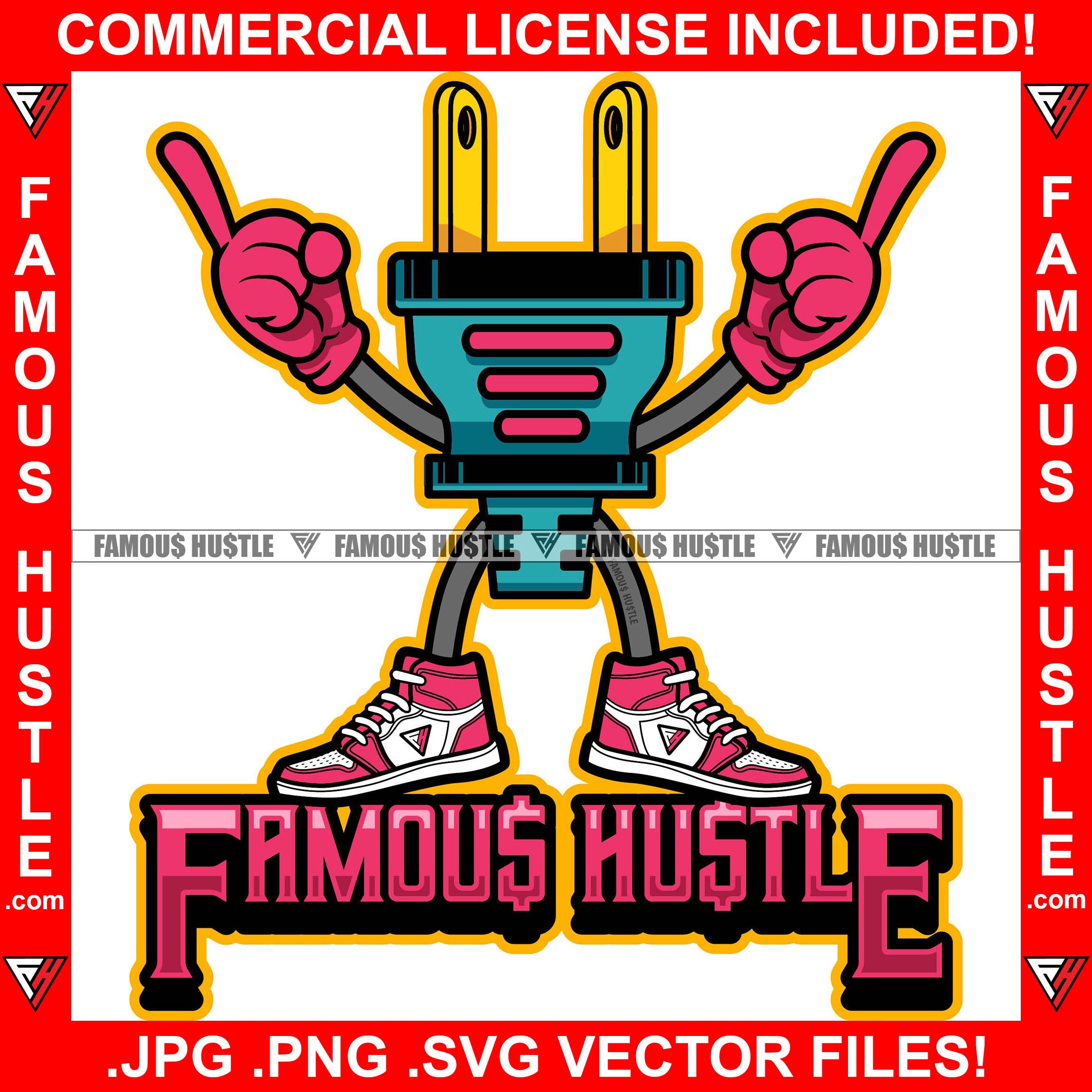 Famous Hustle Gold Electrical Plug Socket Cartoon Character Pink Sneakers Gloves Hip Hop Rap Rapper Plug Trap Street Hood Ghetto Swag Thug Hustler Hustling Baller Trapper Quote Art Graphic Design Logo T-Shirt Print Printing JPG PNG SVG Vector Cut File