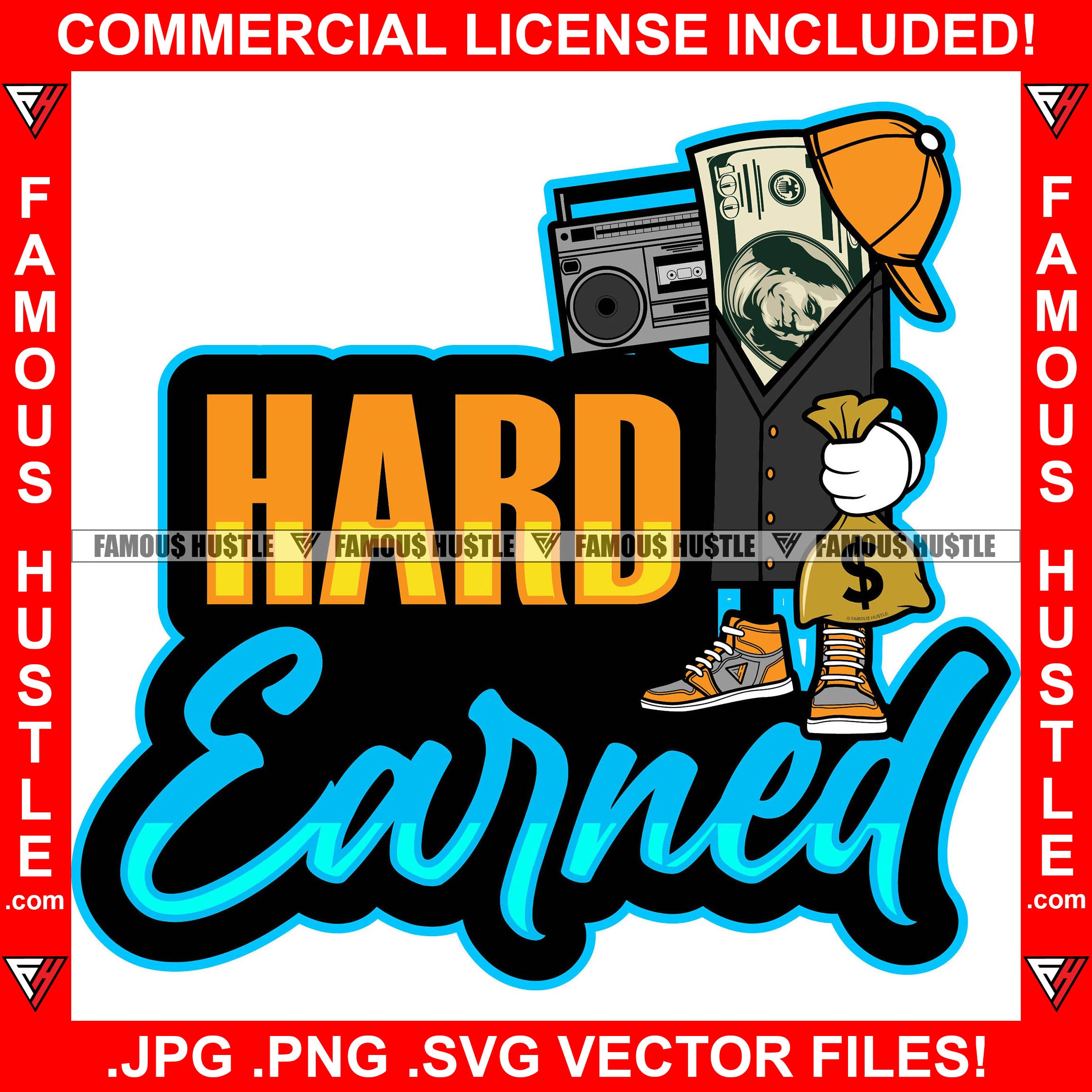 Hard Earned Gangster 100 Dollar Bill Cash Money Bag Recorder Tap Gold Jewelry Boss Dress Hip Hop Rap Plug Trap Street Hood Ghetto Swag Thug Hustler Hustling Famous Hustle Quote Art Graphic Design Logo T-Shirt Print Printing JPG PNG SVG Vector Cut File