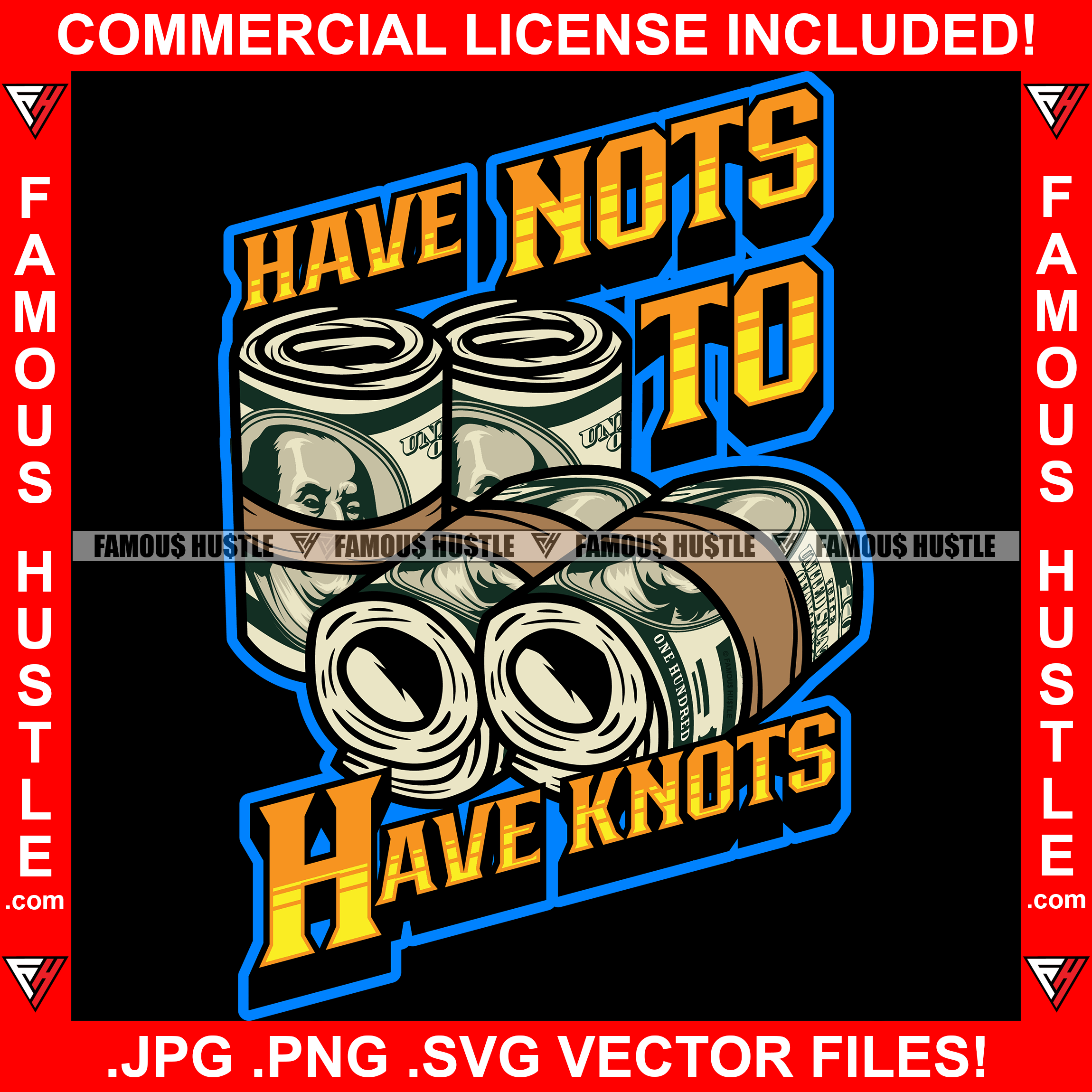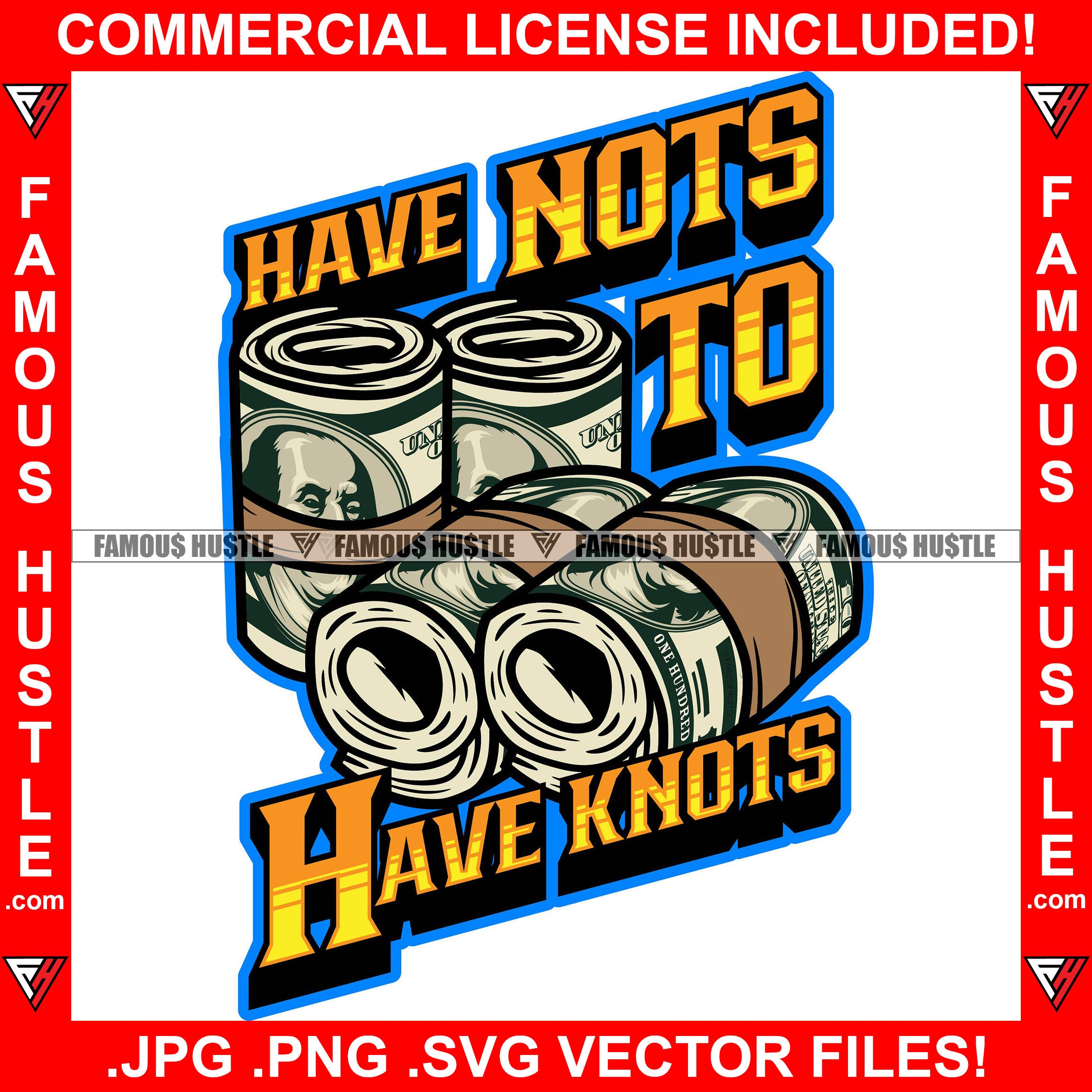 Have Nots To Have Knots $100 Bill Cash Bundles Rolls Hip Hop Rap Rapper Plug Trap Street Hood Ghetto Swag Thug Hustler Hustling Famous Hustle Baller Trapper Quote Art Graphic Design Logo T-Shirt Print Printing JPG PNG SVG Vector Cut File