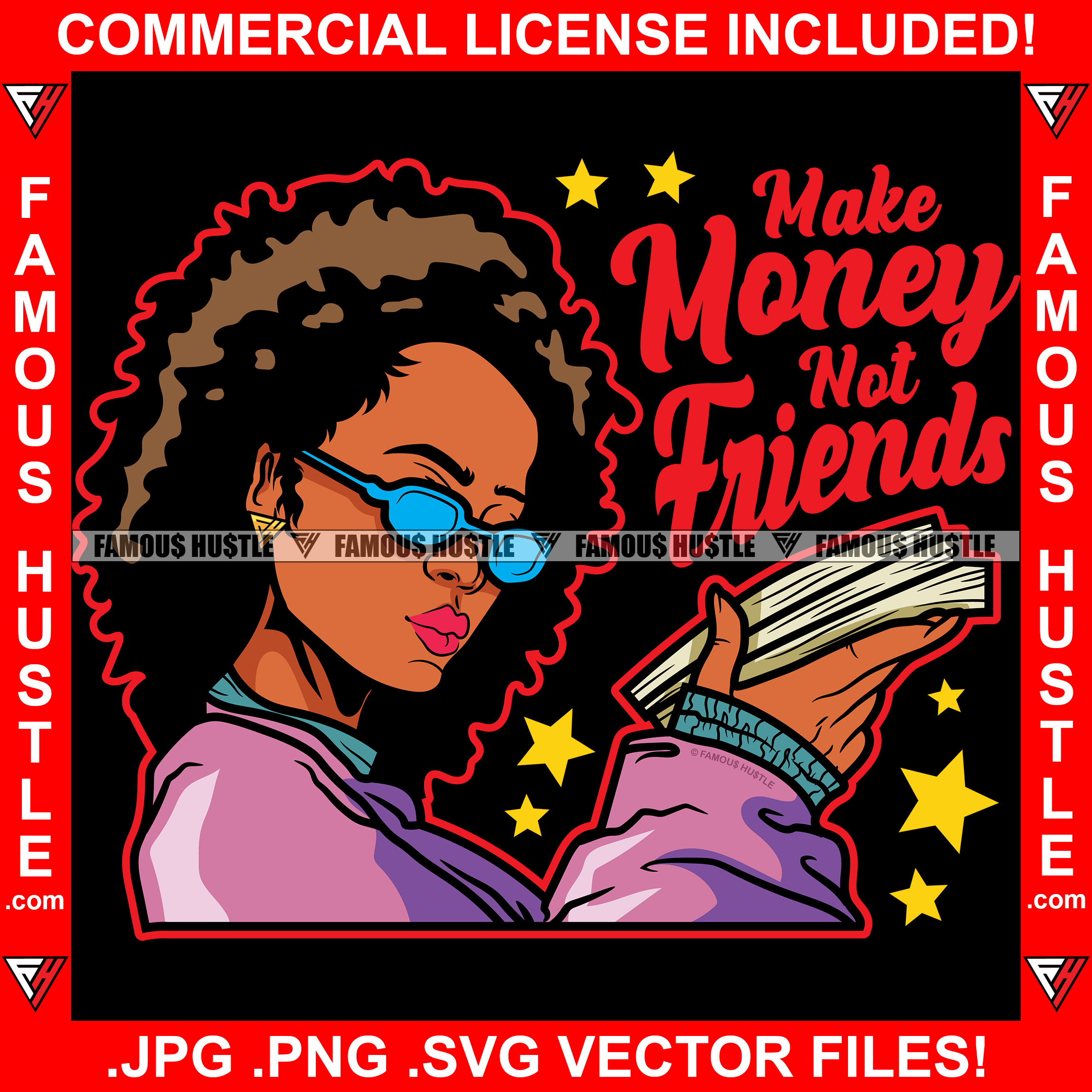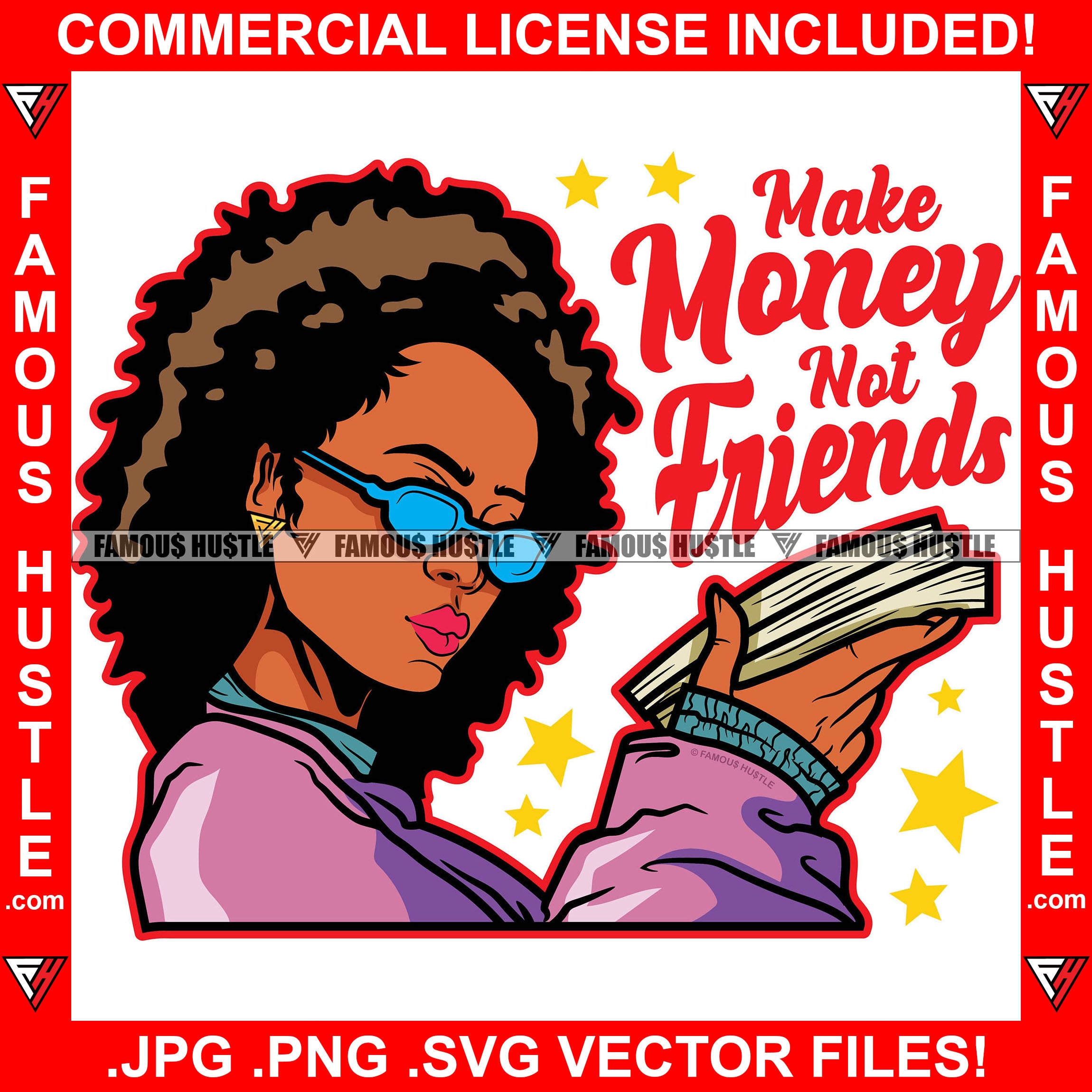 Make Money Not Friends Sexy Lady Glasses Cash Bundles Gold Earrings Hip Hop Rap Rapper Plug Trap Street Hood Ghetto Swag Thug Hustler Hustling Famous Hustle Baller Trapper Quote Art Graphic Design Logo T-Shirt Print Printing JPG PNG SVG Vector Cut File