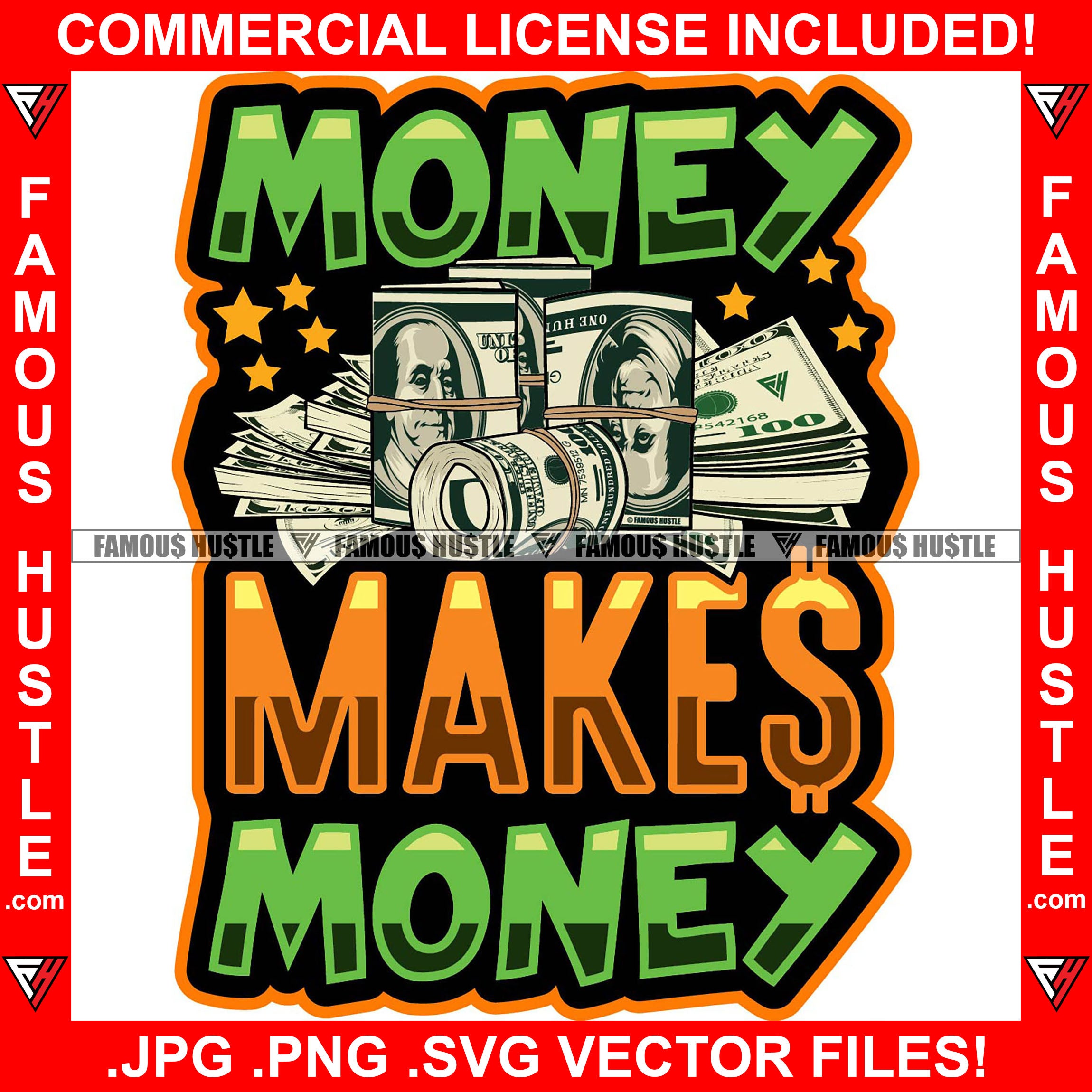 Money Makes Money $100 Bill Cash Bundles Rolls Hip Hop Rap Rapper Plug Trap Street Hood Ghetto Swag Thug Hustler Hustling Famous Hustle Baller Trapper Quote Art Graphic Design Logo T-Shirt Print Printing JPG PNG SVG Vector Cut File