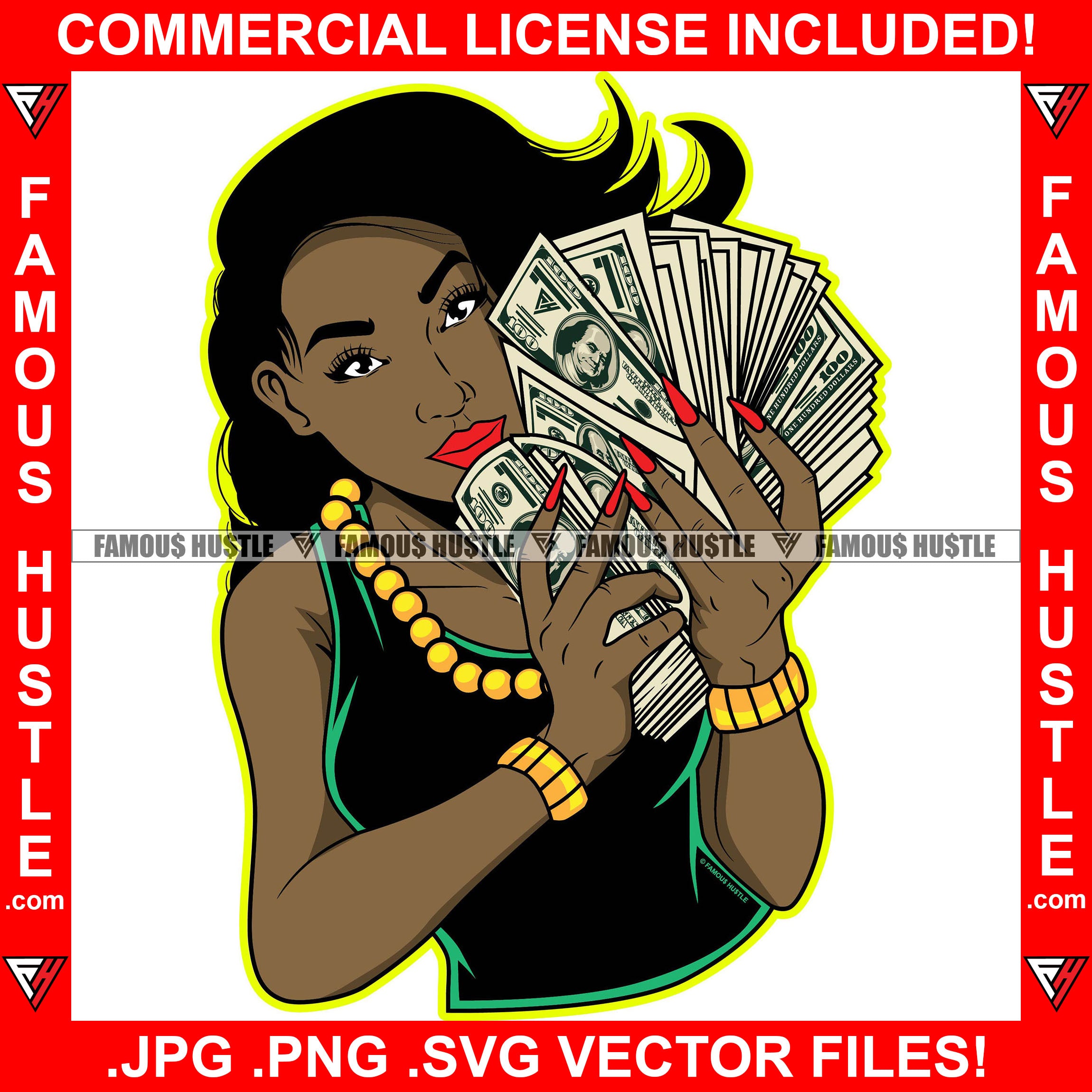 Paper Chaser Black Sexy Gangster Lady Female Cash Money Hands Gold Jewelry Red Lips Nails Hip Hop Rap Plug Trap Street Hood Ghetto Swag Thug Famous Hustle Baller Trapper Art Graphic Design Logo T-Shirt Print Printing JPG PNG SVG Vector Cut File