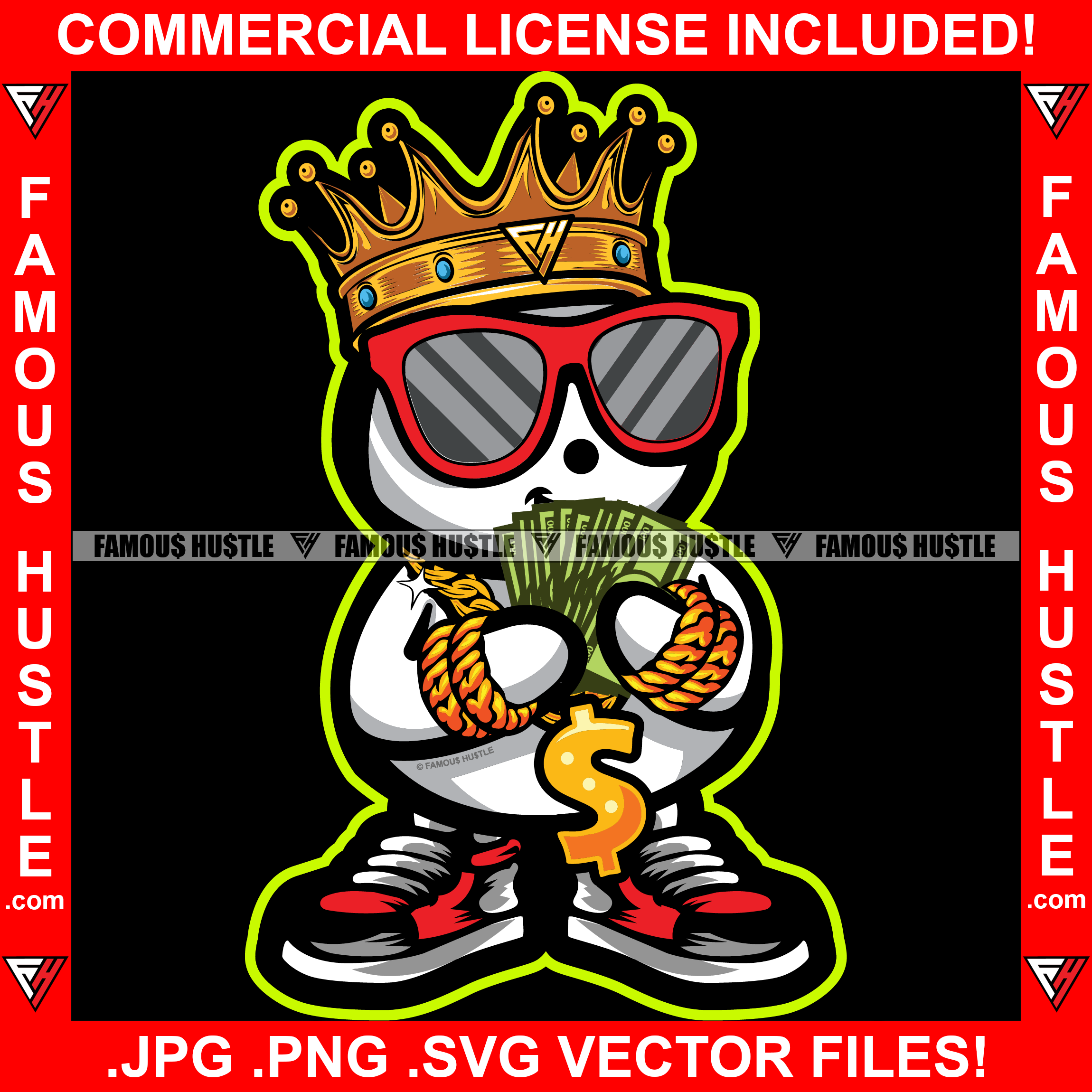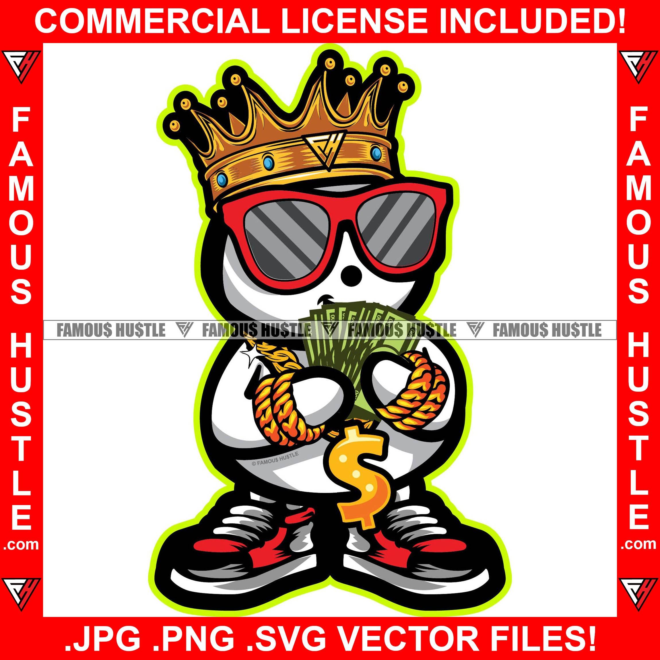 Paper Chaser King Happy Snowman Glasses Sneakers Gold Dollar Sign Necklace Cash Money In Hands Hip Hop Rap Plug Trap Street Hood Ghetto Swag Thug Hustler Hustling Art Graphic Design Logo T-Shirt Print Printing JPG PNG SVG Vector Cut File