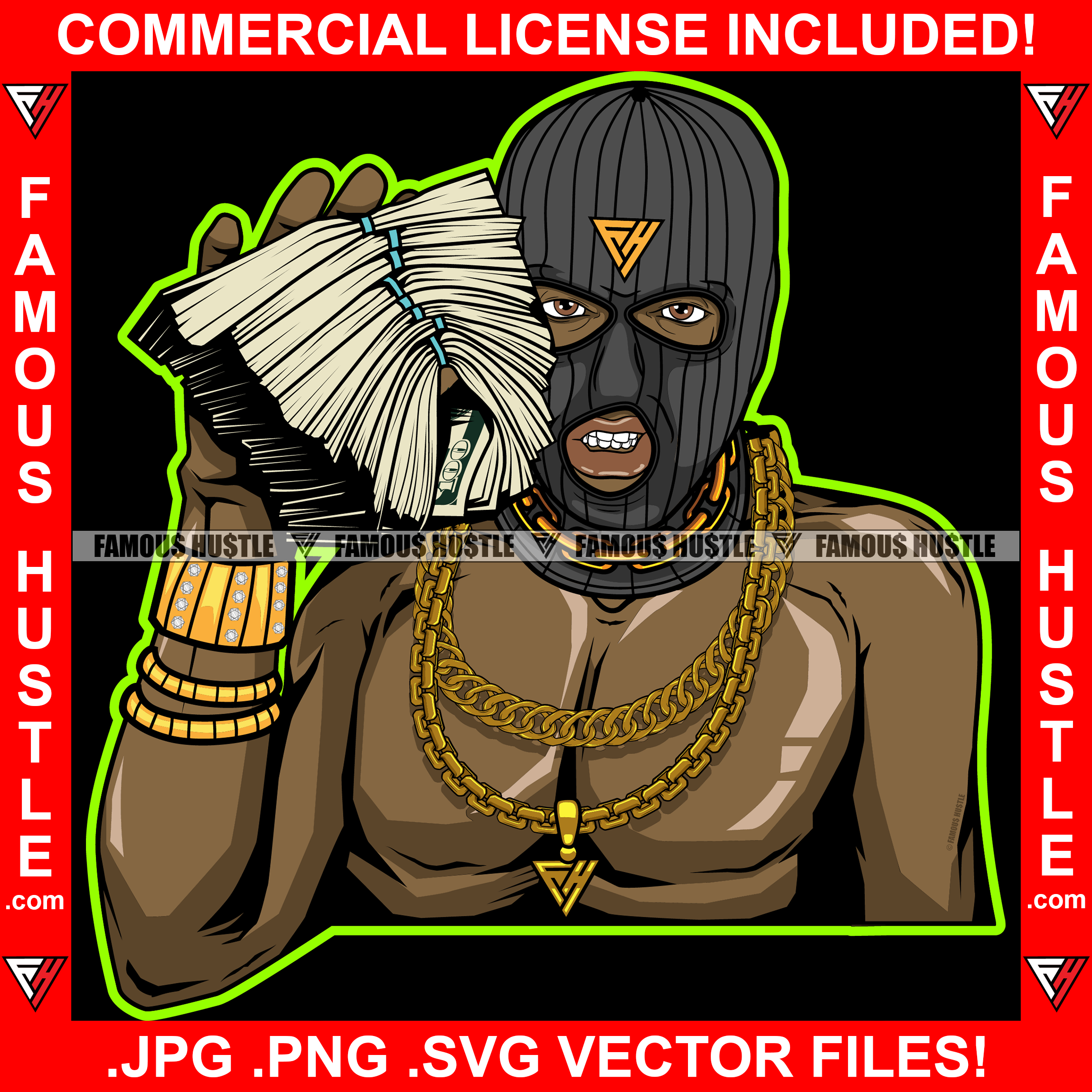 Respect Gangster Black Man Ski Mask Gold Jewelry Cash Money Stack Body Builder Hip Hop Rap Street Hood Ghetto Swag Thug Hustler Hustling Famous Hustle Baller Trapper Art Graphic Design Logo T-Shirt Print Printing JPG PNG SVG Vector Cut File