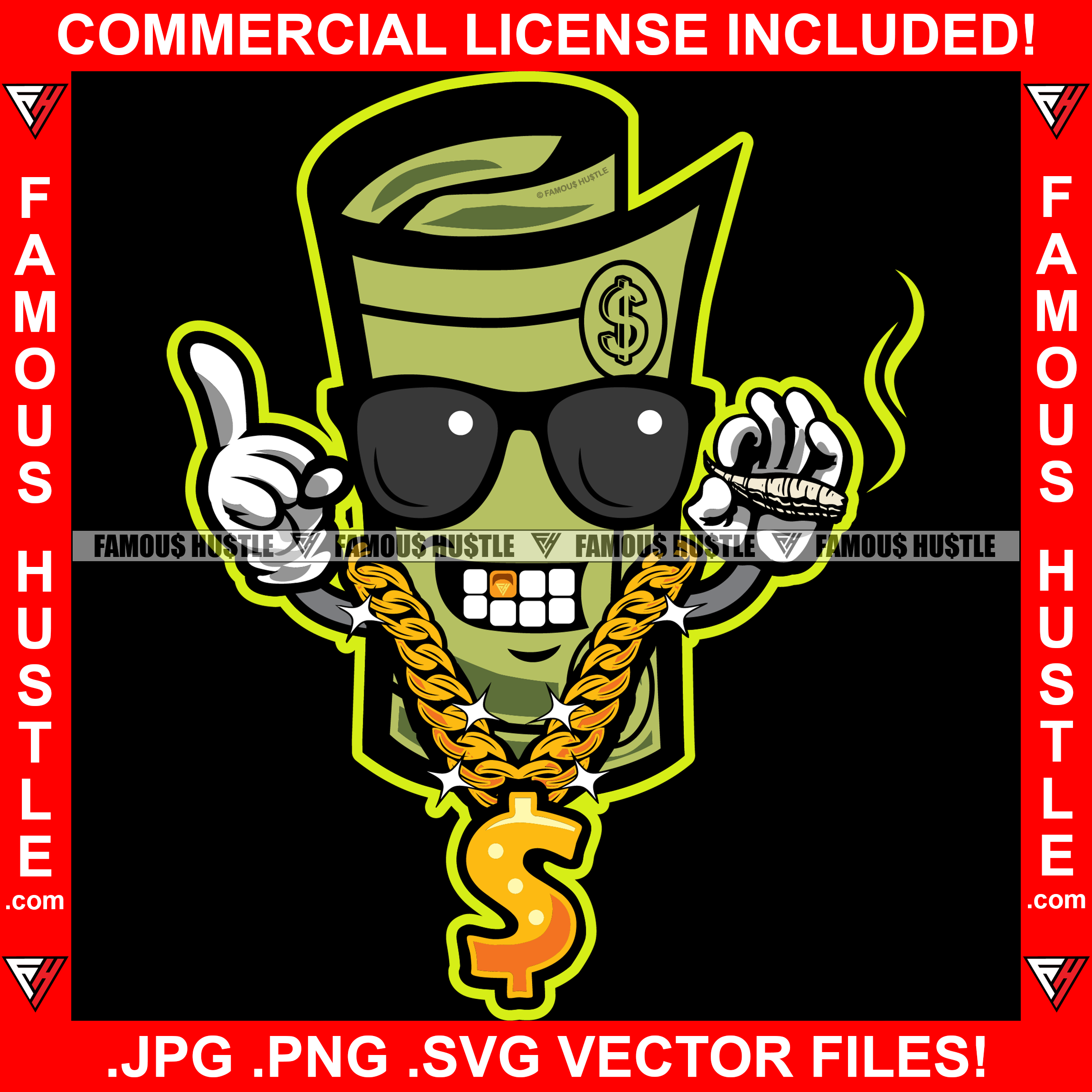Trap Star Drugs Gangster 100 Dollar Bill Money Roll Sunglasses Gold Dollar Sign Necklace Teeth Jewelry Smoking Sneakers Hip Hop Rap Drip Plug Trap Hood Tattoo Cartoon Character Ghetto Art Graphic Design Logo Print Printing Vector SVG Cut File