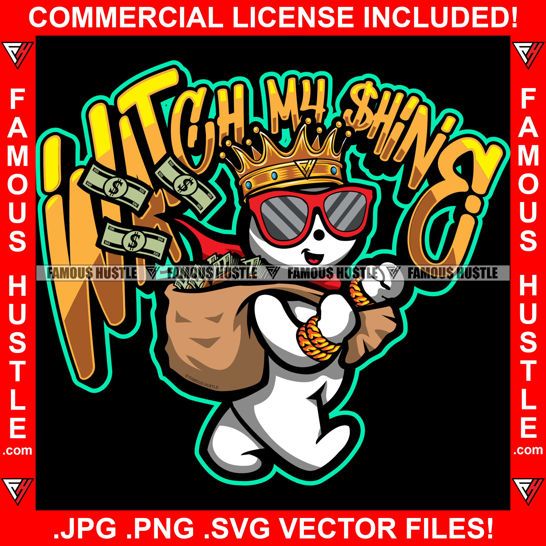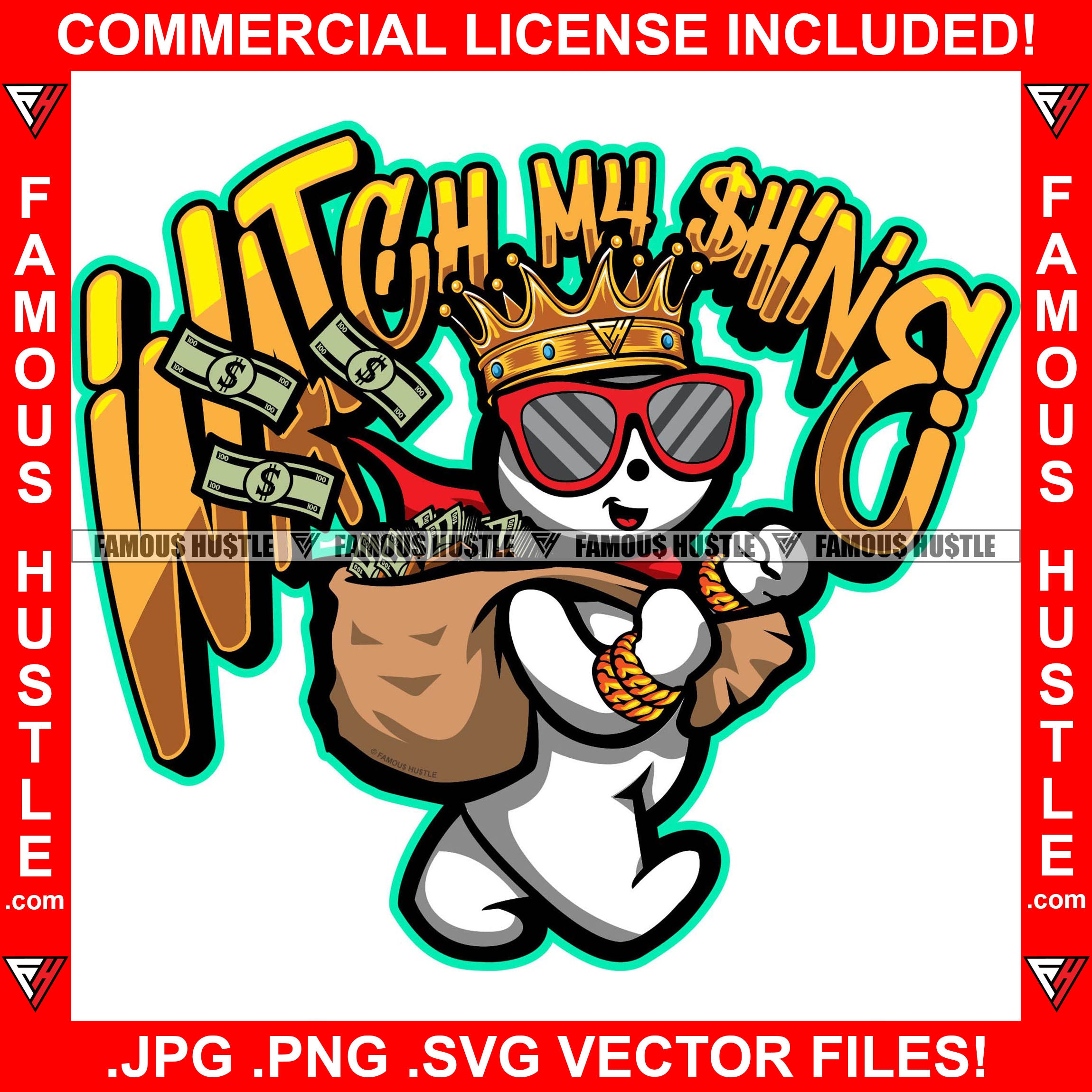 Watch My Shine King Happy Snowman Glasses Cash Money Bag Christmas Day Ready Hip Hop Rap Rapper Plug Trap Street Hood Ghetto Swag Thug Hustler Hustling Famous Hustle Quote Art Graphic Design Logo T-Shirt Print Printing JPG PNG SVG Vector Cut File