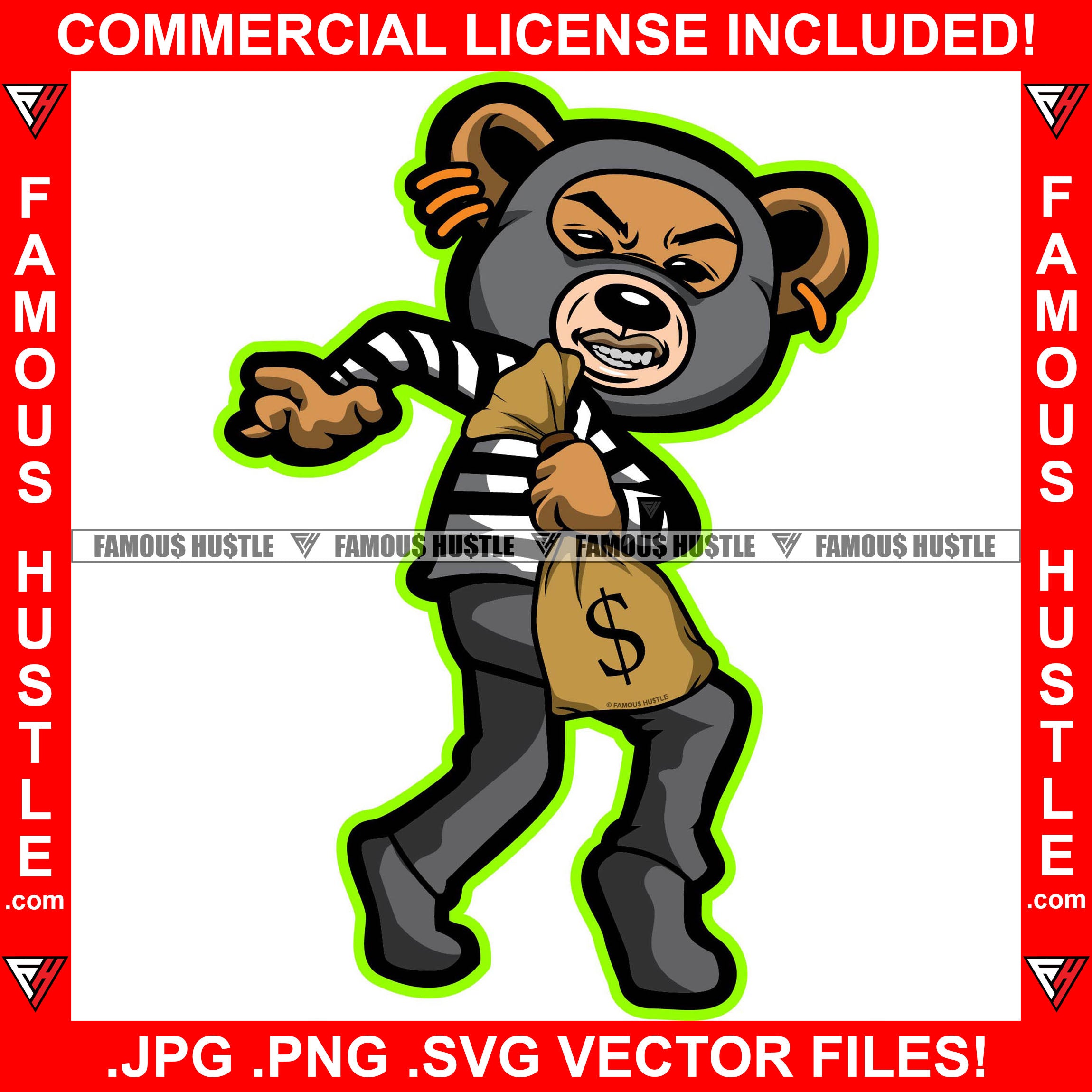 We Run The Streets Teddy Bear Ski Mask Running Cash Money Bag Jail Dress Robber Hip Hop Rap Plug Trap Street Hood Ghetto Thug Hustler Hustling Drip Famous Hustle Art Graphic Design Logo T-Shirt Print Printing JPG PNG SVG Vector Cut File
