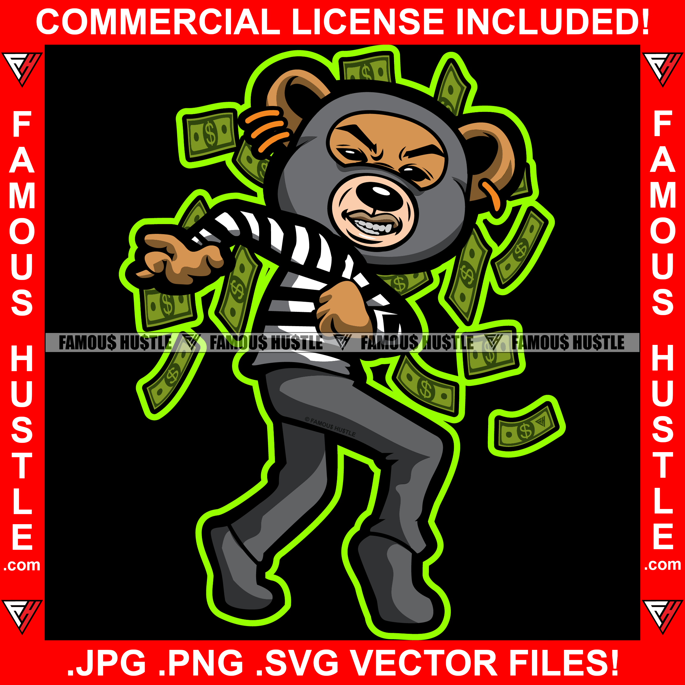 We Run The Streets Teddy Bear Ski Mask Running Cash Raining Jail Dress Hip Hop Rap Plug Trap Street Hood Ghetto Thug Hustler Hustling Drip Famous Hustle Art Graphic Design Logo T-Shirt Print Printing JPG PNG SVG Vector Cut File