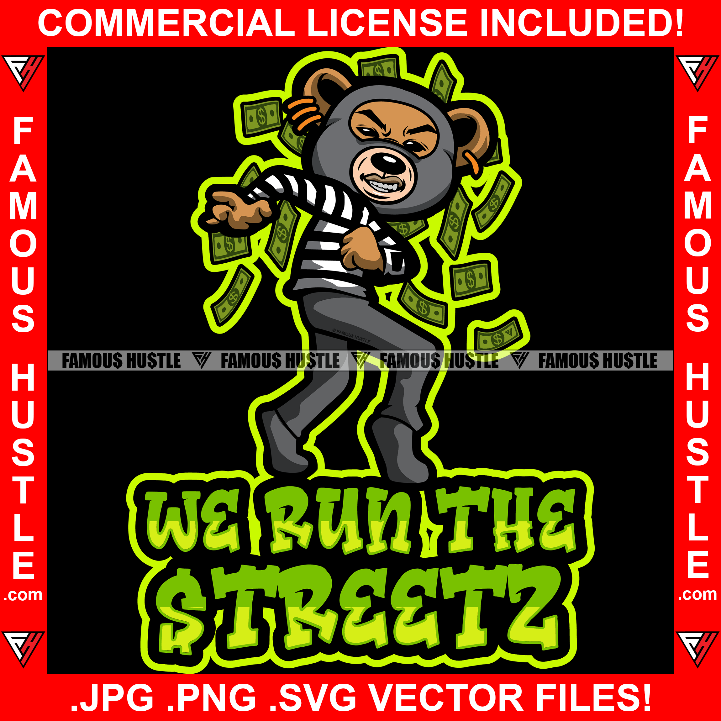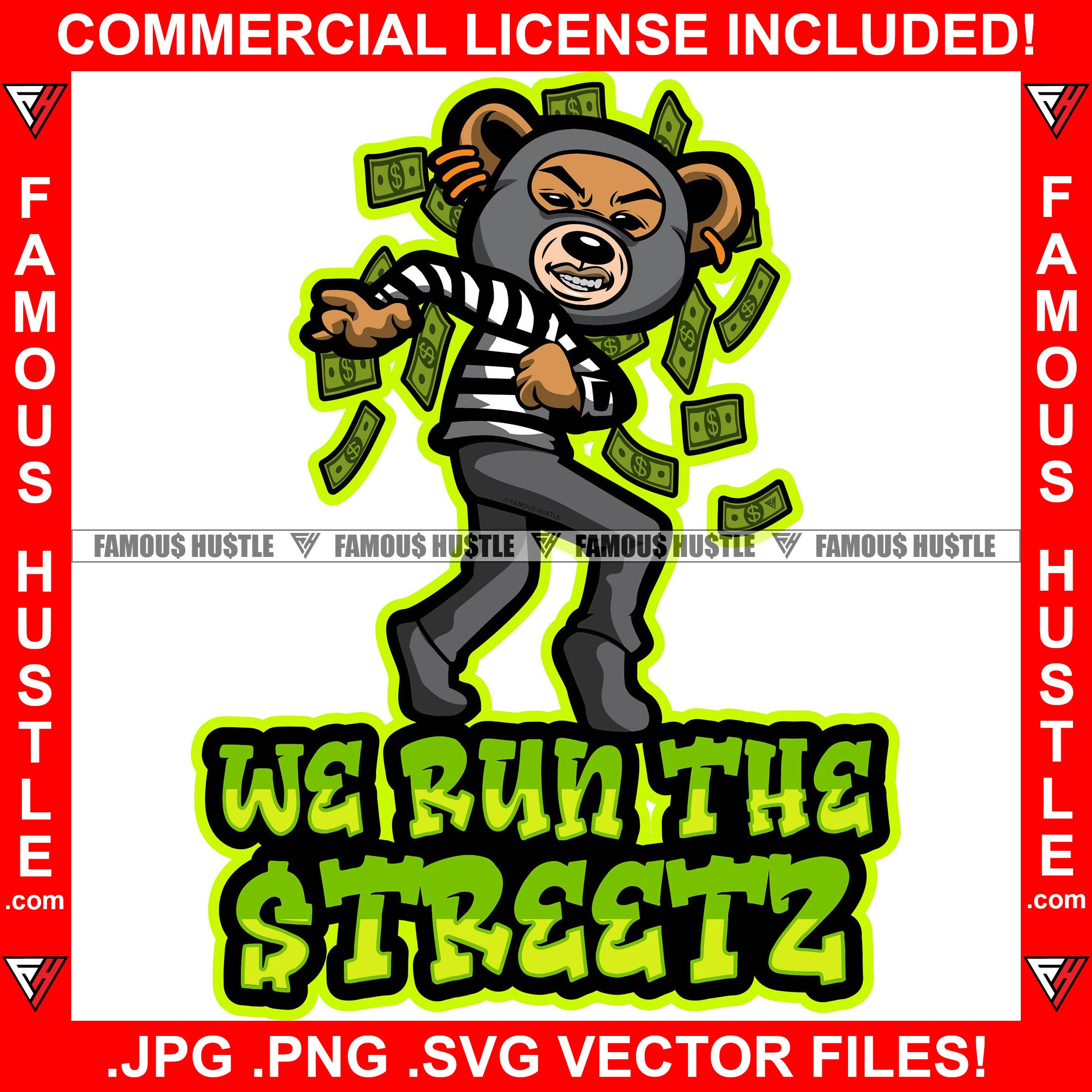 We Run The Streets Teddy Bear Ski Mask Running Cash Raining Jail Dress Hip Hop Rap Plug Trap Street Hood Ghetto Thug Hustler Hustling Drip Famous Hustle Quote Art Graphic Design Logo T-Shirt Print Printing JPG PNG SVG Vector Cut File