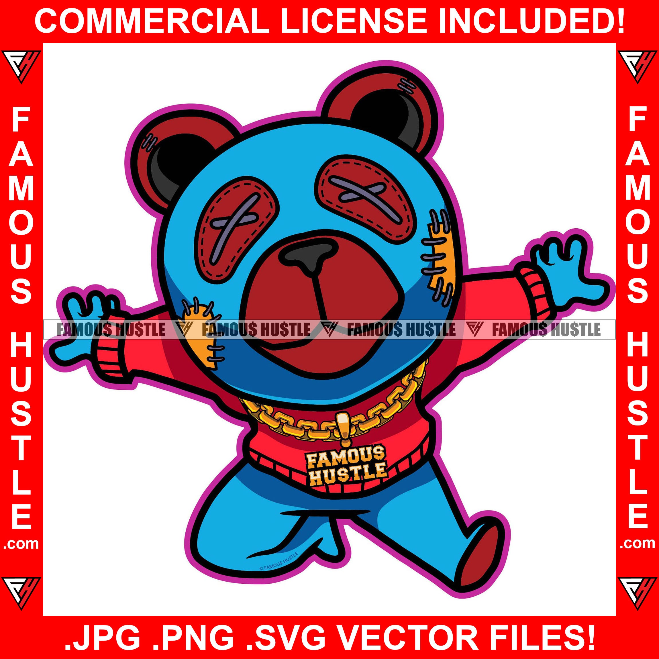 Heartless Gangster Teddy Bear Stitched Eyes Patch No Heart Gold Chain Necklace College Sweater Jumping Hip Hop Rap Trap Street Hood Ghetto Thug Hustler Hustling Famous Hustle Art Graphic Design Logo T-Shirt Print Printing JPG PNG SVG Vector Cut File