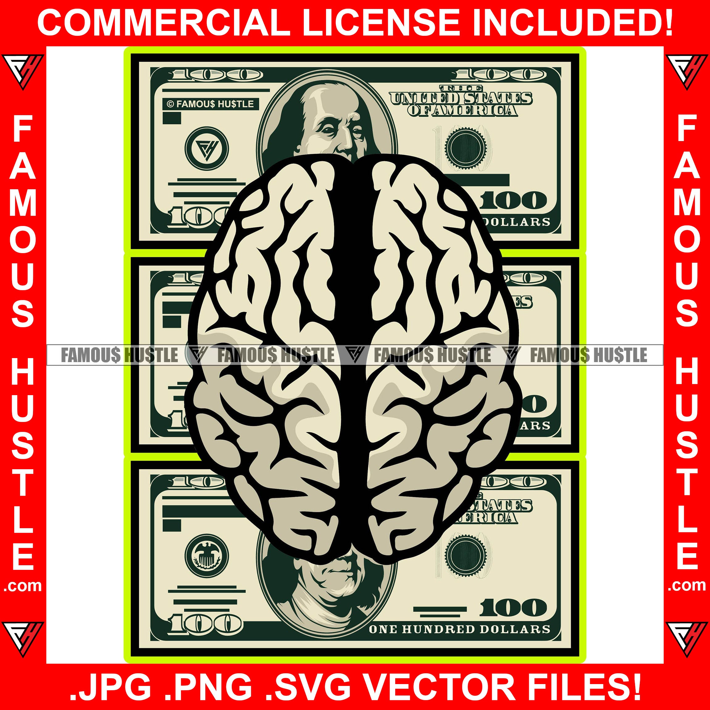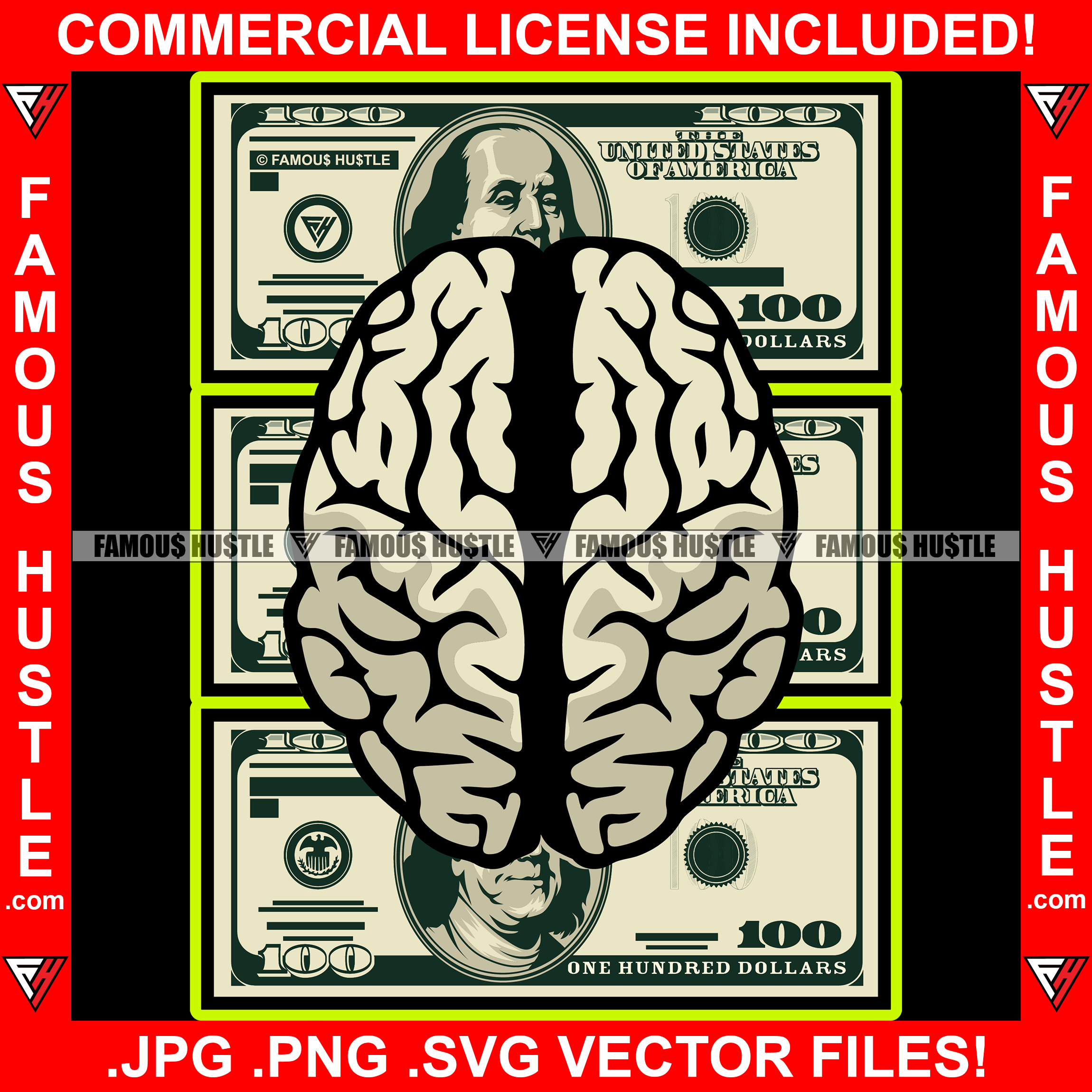 Money Never Sleep Gangster Mind Brain On Cash $100 Dollar Bill Hip Hop Rap Rapper Plug Trap Street Hood Ghetto Swag Thug Hustler Trapper Famous Hustle Art Graphic Design Logo T-Shirt Print Printing JPG PNG SVG Vector Cut File