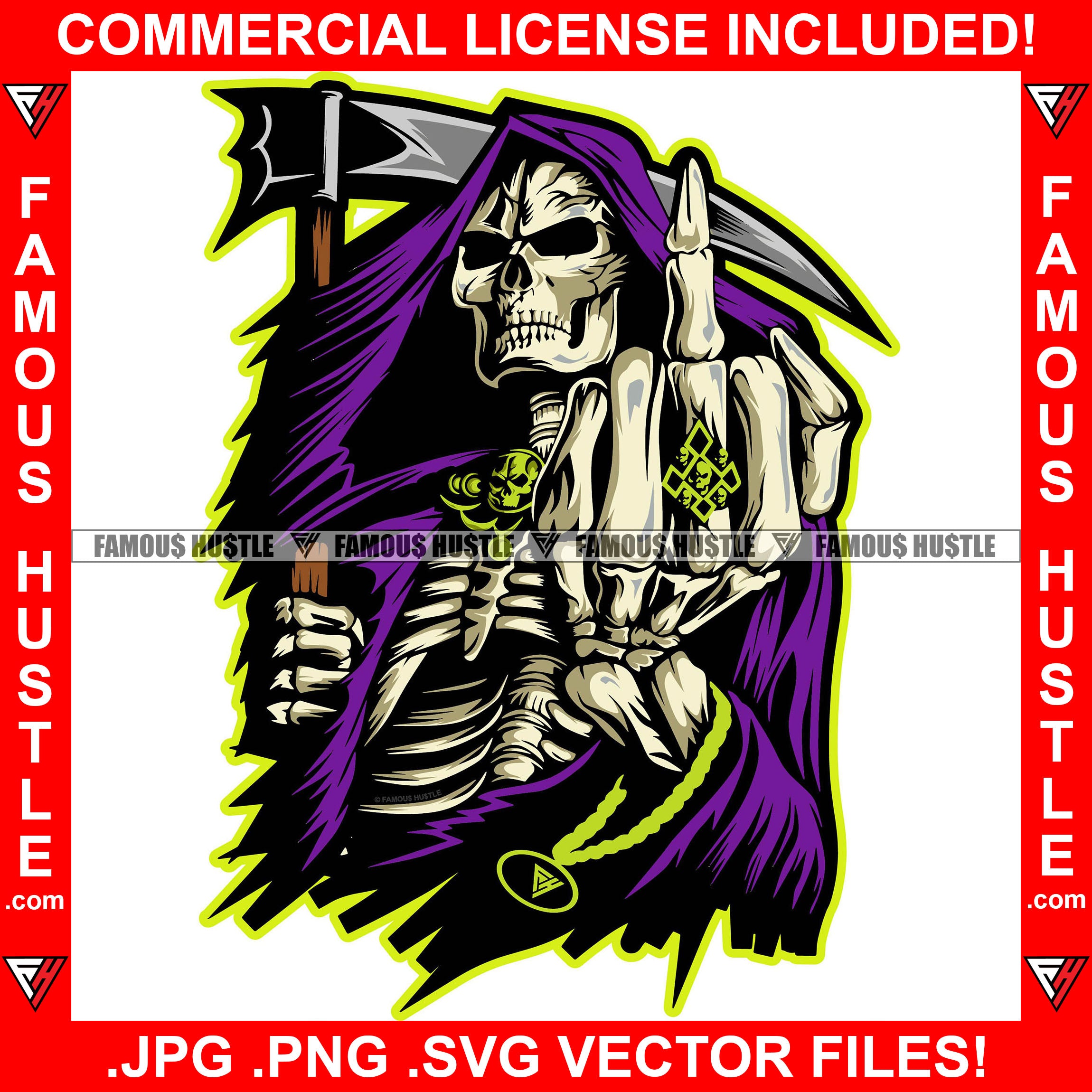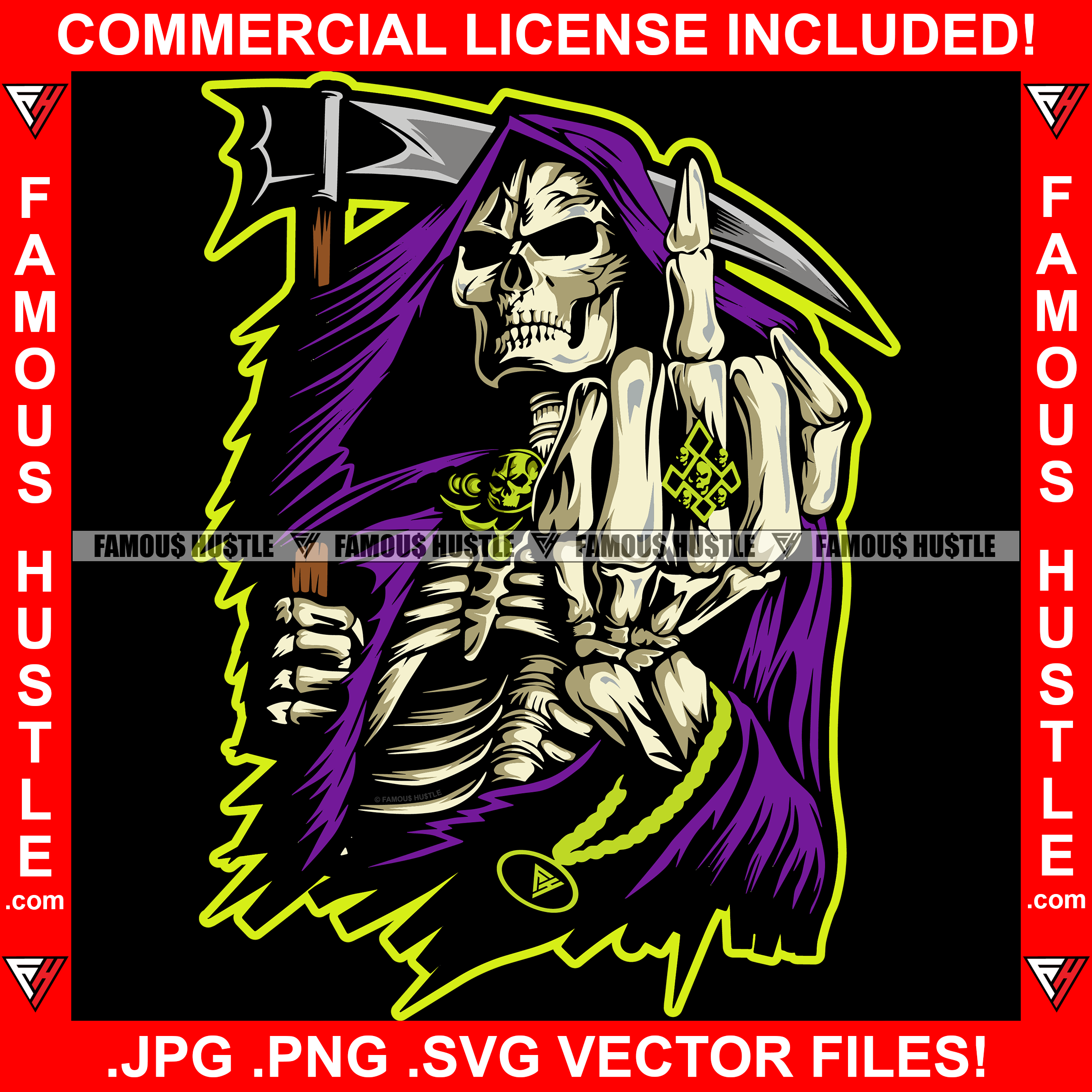 Street Demon Savage Skull Skeleton Grim Reaper Hooded Angry Middle Finger Hip Hop Rap Plug Trap Street Hood Swag Thug Hustler Hustling Famous Hustle Baller Trapper Art Graphic Design Logo T-Shirt Print Printing JPG PNG SVG Vector Cut File