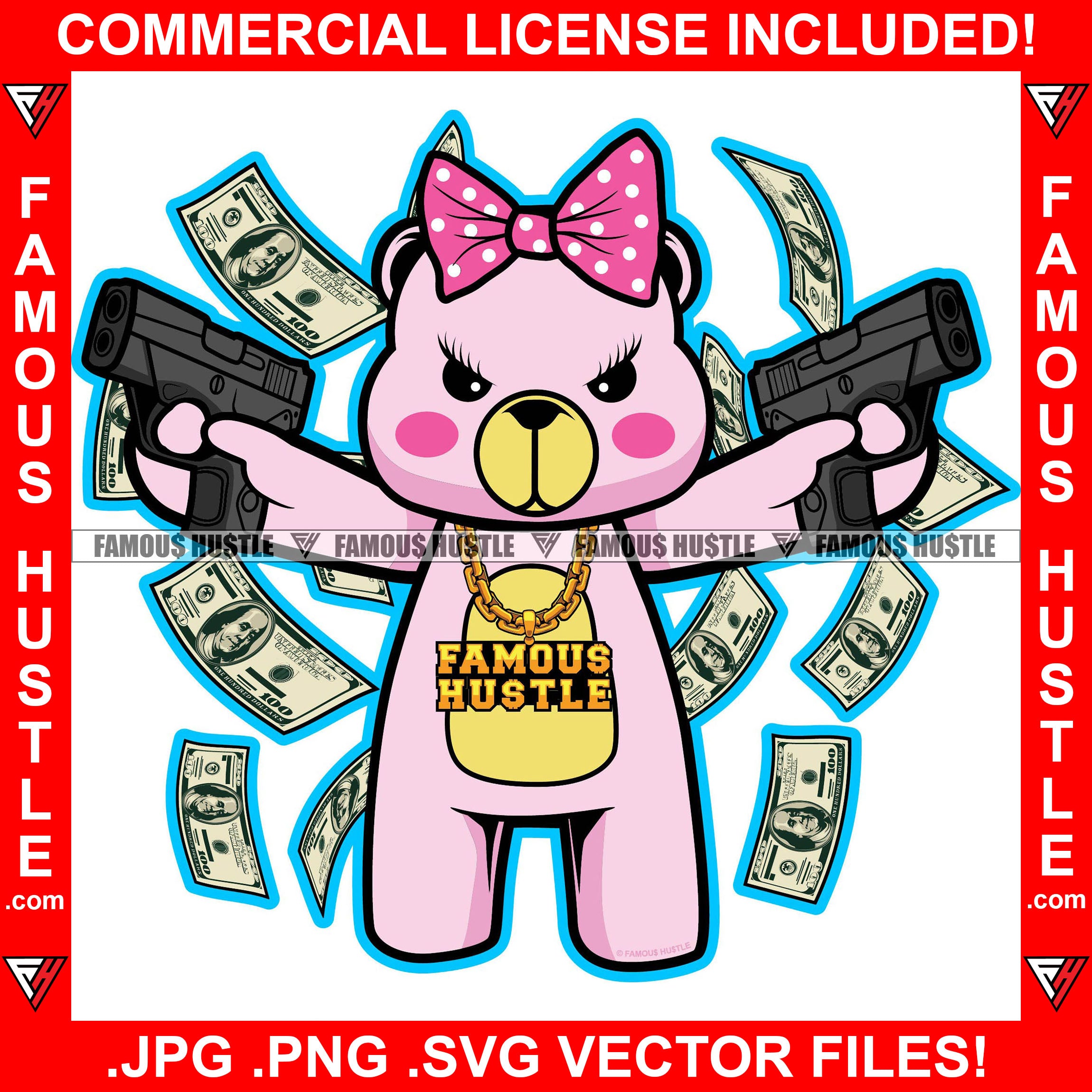 Dont Struggle Hustle Adorable Female Gangster Pink Teddy Bear Girl Pink Bow Machine Guns Falling Money Cash Hip Hop Rap Street Hood Ghetto Swag Thug Hustler Hustling Famous Hustle Art Graphic Design Logo T-Shirt Print Printing JPG PNG SVG Vector Cut File