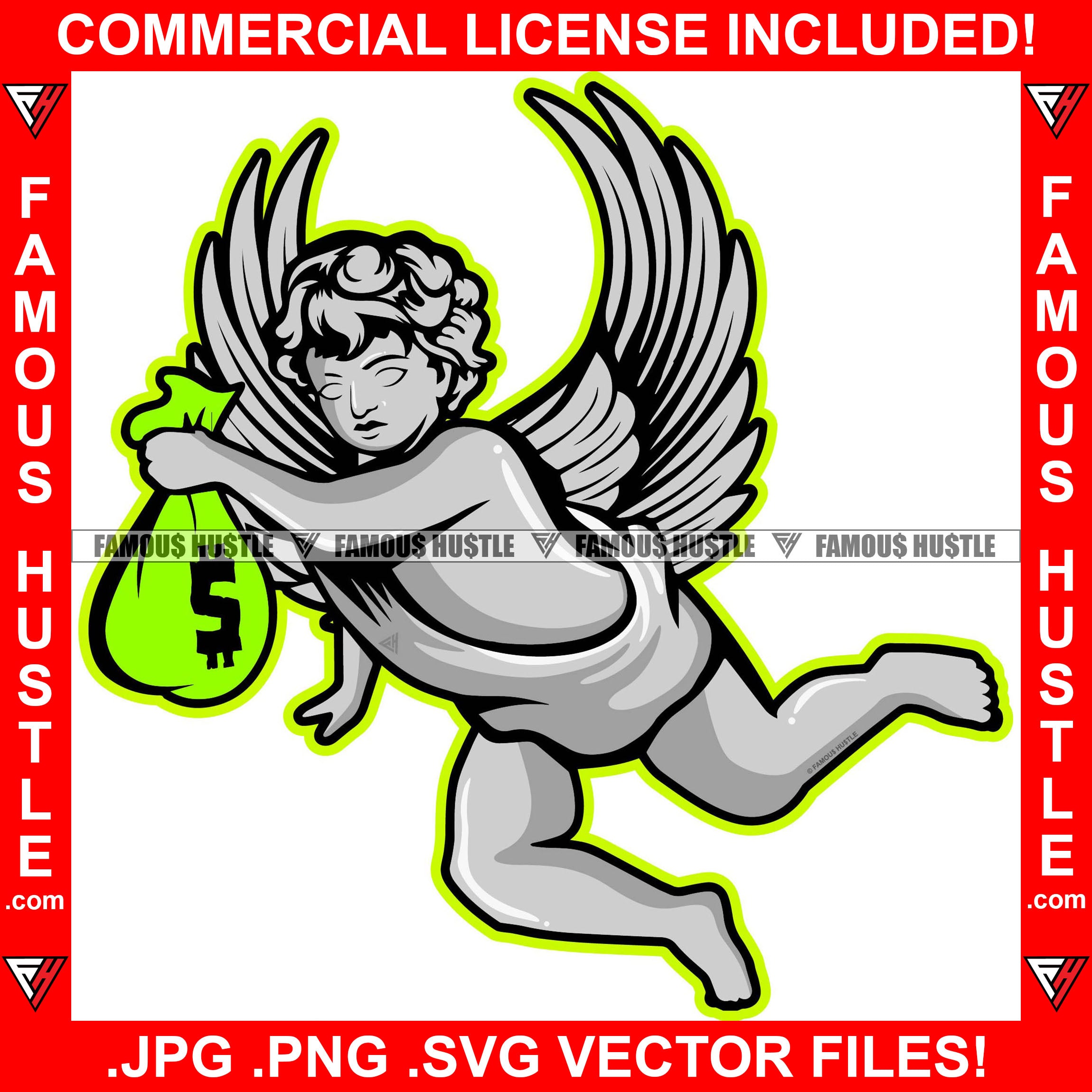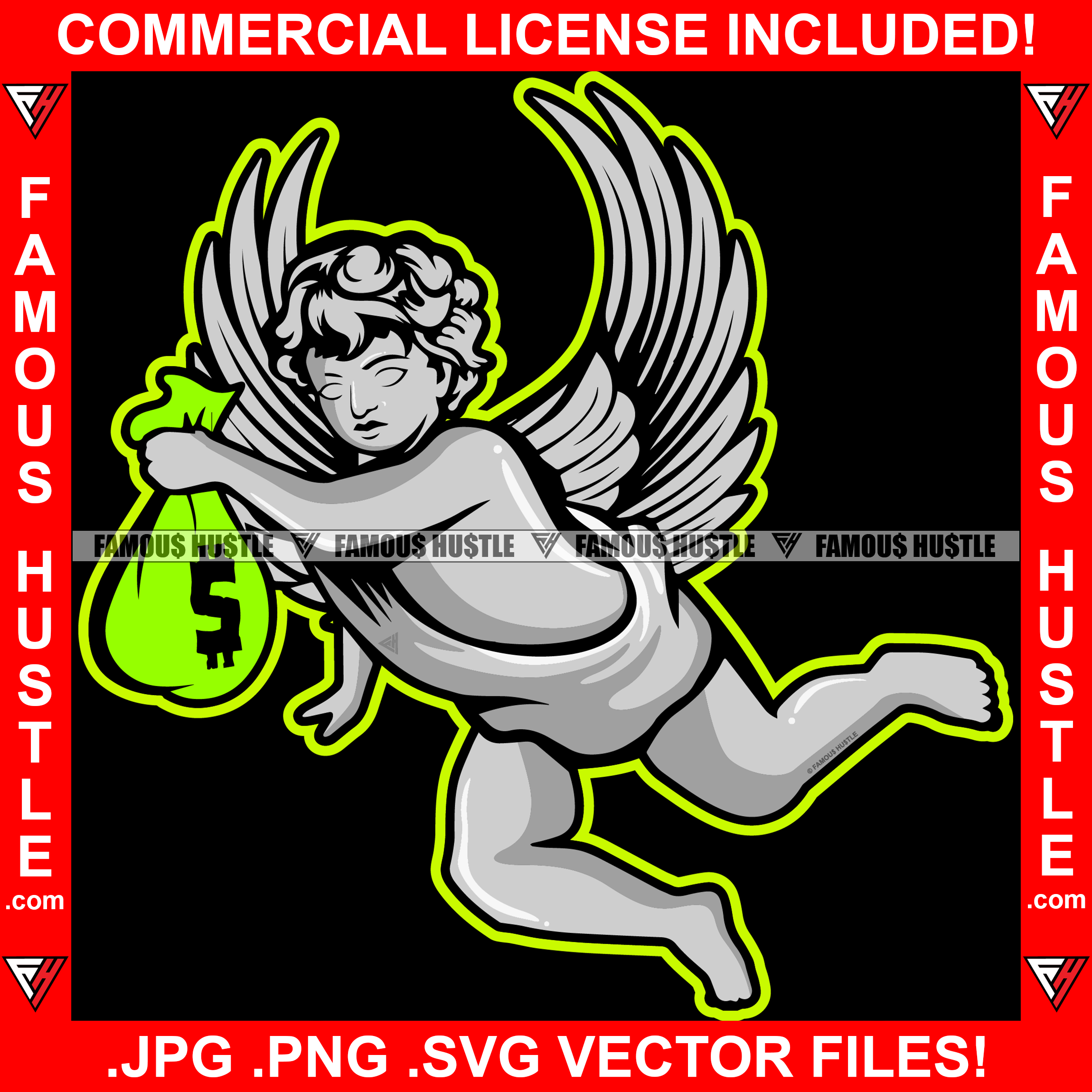 Famous Hustle Dripping Gangster Angel Wings Statue Cash Money Green Bag Tattoo Hip Hop Rap Rapper Plug Trap Street Hood Ghetto Thug Hustler Hustling Drip Boss Art Graphic Design Logo T-Shirt Print Printing JPG PNG SVG Vector Cut File