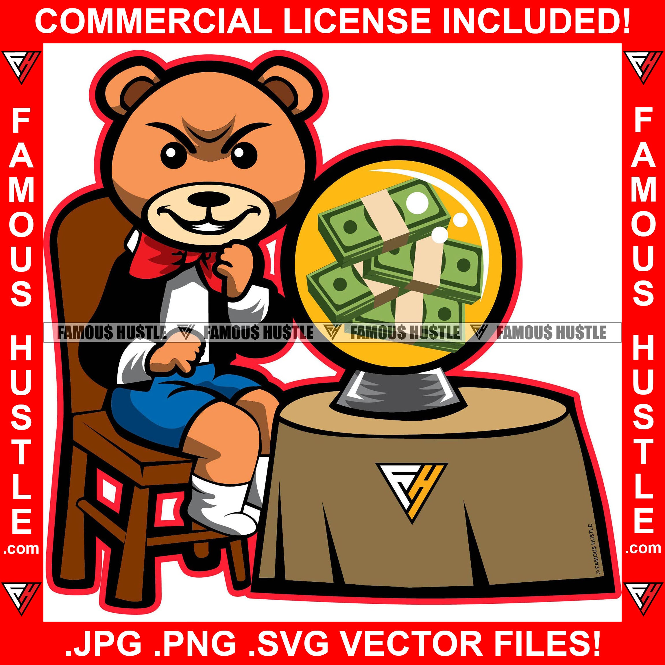 Famous Hustle Teddy Bear Mean Face Sitting Fortuneglobe Money Cash Black Coat Red Bow Hip Hop Rap Plug Trap Street Hood Ghetto Swag Thug Drip Dripping Art Graphic Design Logo T-Shirt Print Printing JPG PNG SVG Vector Cut File