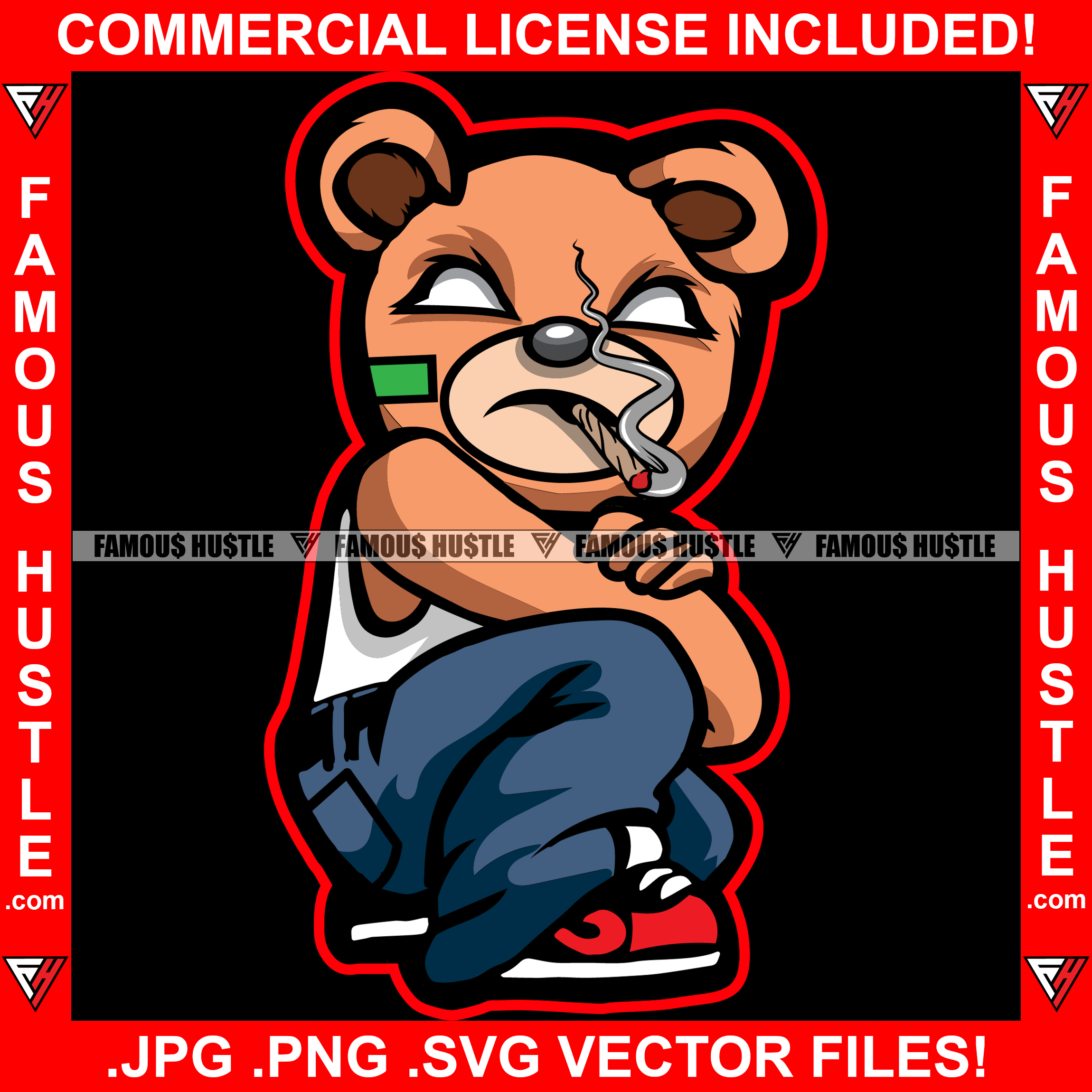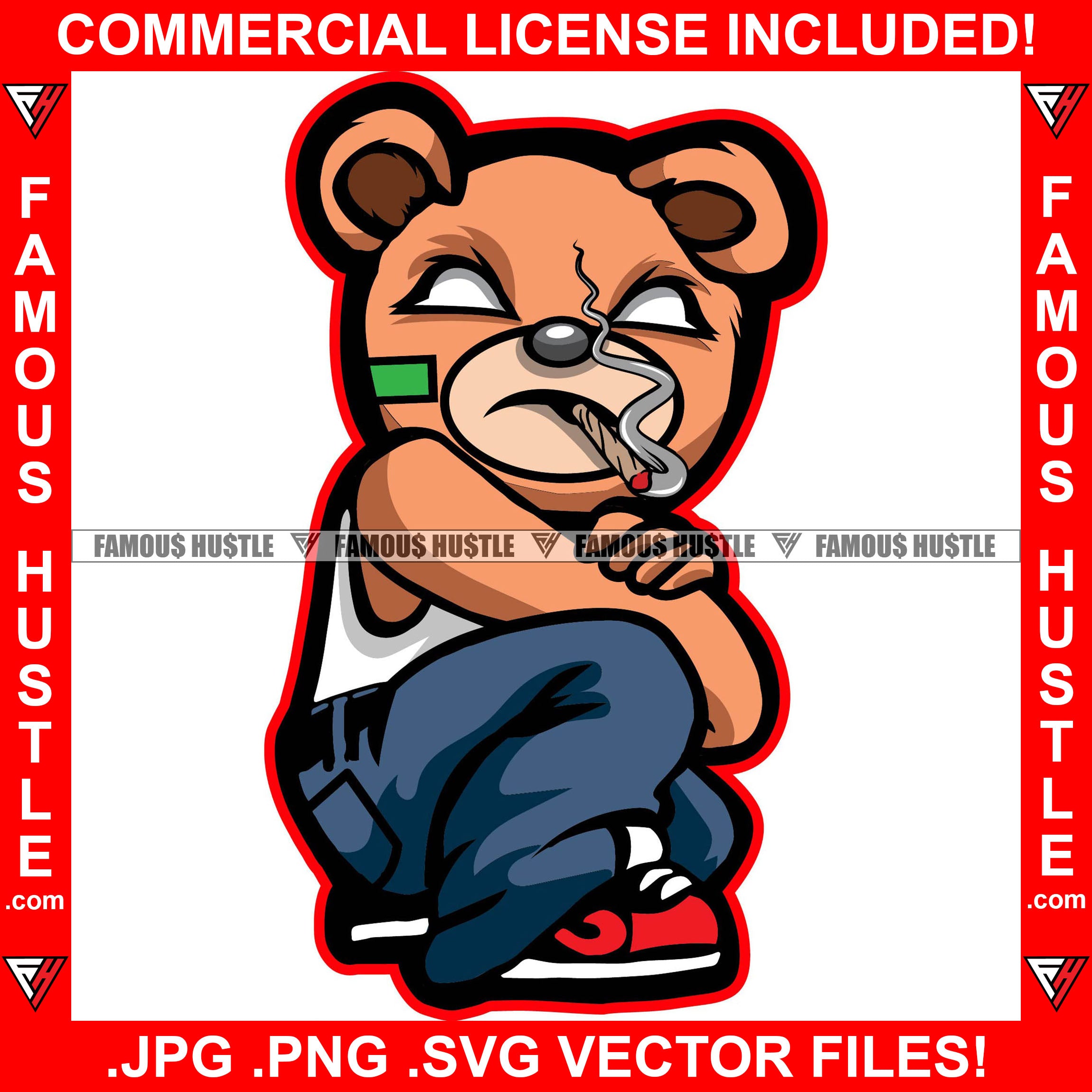 The Hustle Dont Sleep Gangster Teddy Bear White Eyes Mean Face Marijuana Cigarette Smoke Sneakers Hip Hop Rap Plug Hustling Trap Trapper Art Graphic Design Logo T-Shirt Print Printing JPG PNG SVG Vector Cut File