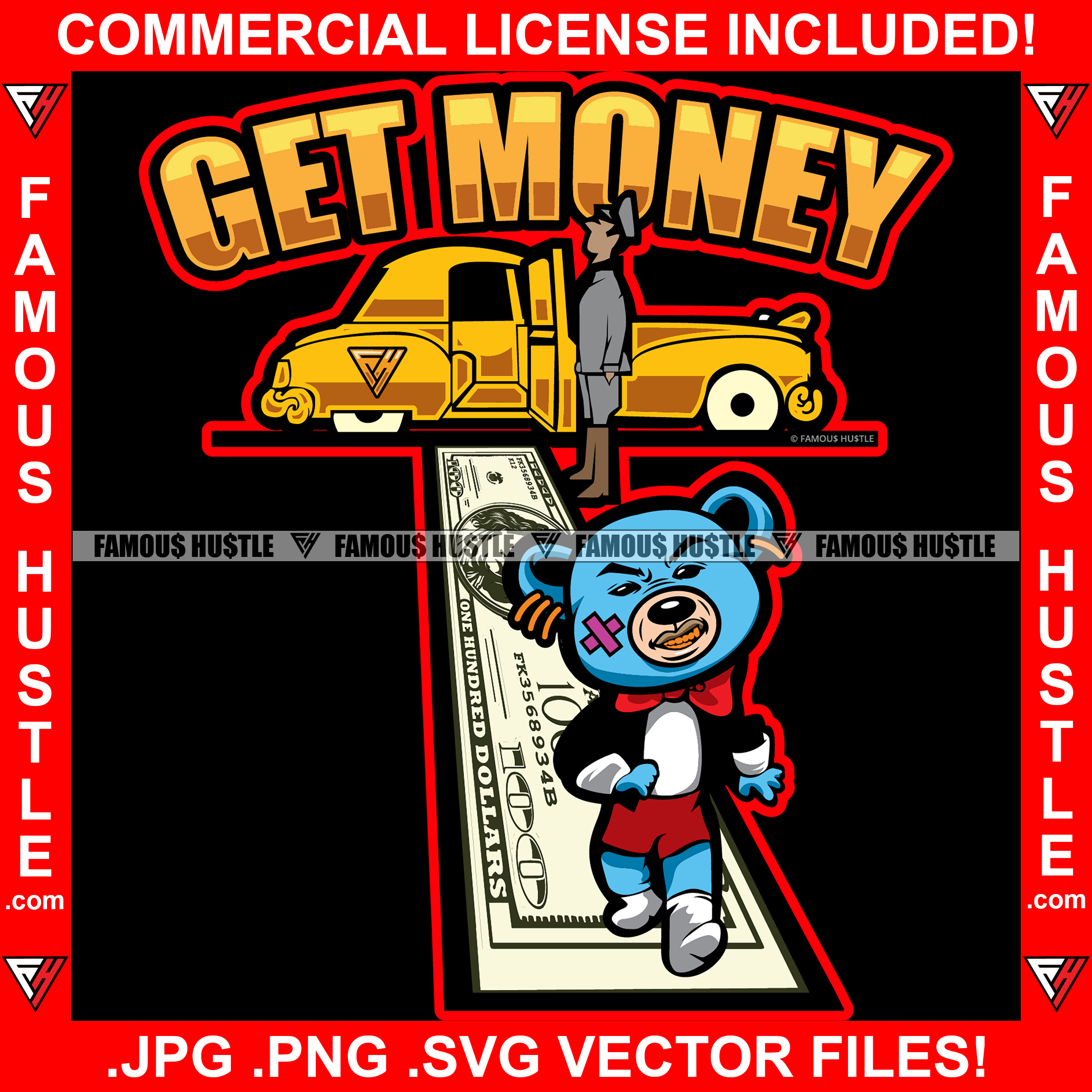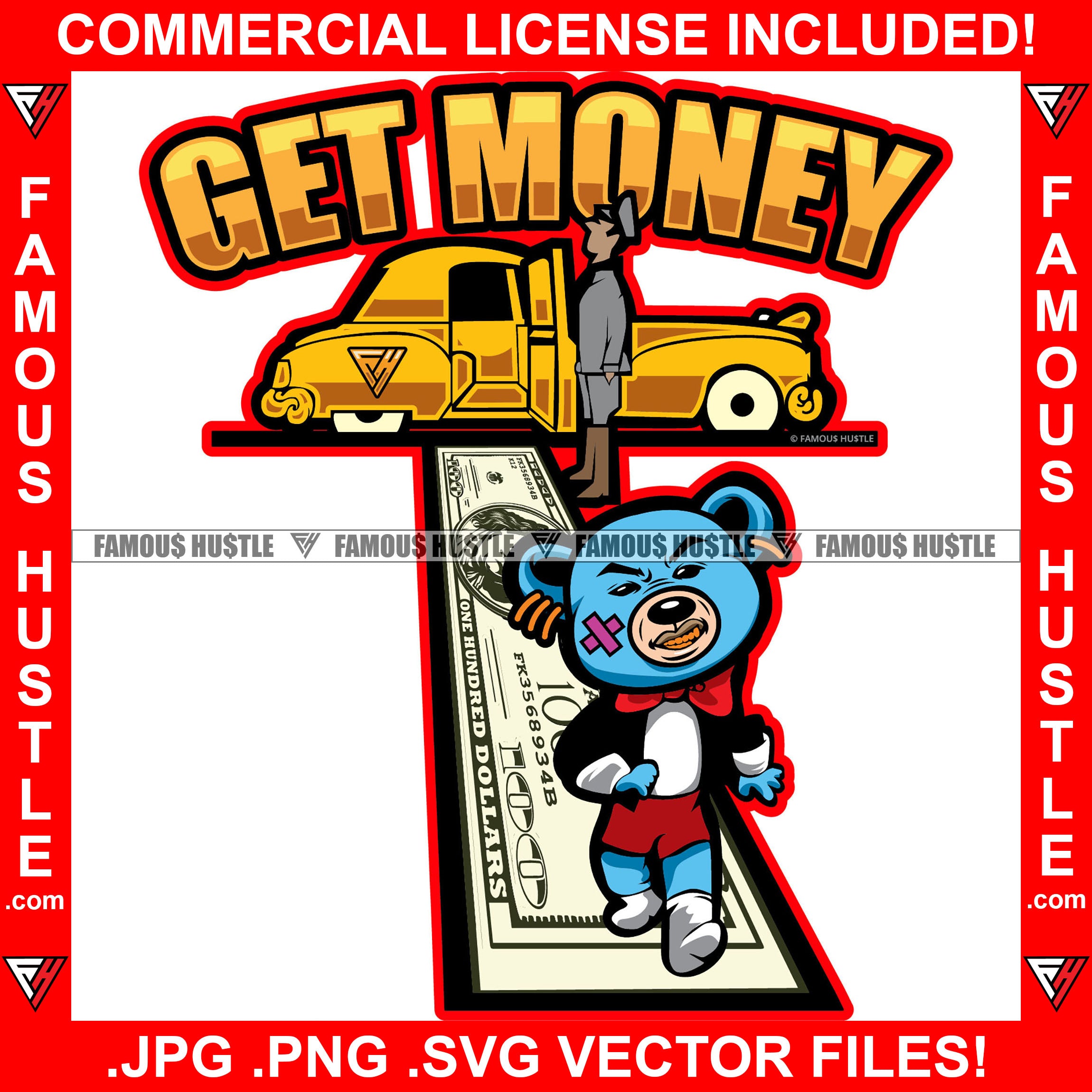 Get Money Rich Gangster Teddy Bear Walking 100 Dollar Bill Carpet Gold Limo Car Tattoo Hip Hop Rap Hustler Boss Drip Plug Trap Hood Thug Gang Street Cartoon Famous Hustle Quote Art Graphic Design Logo T-Shirt Print Printing JPG PNG SVG Vector Cut File