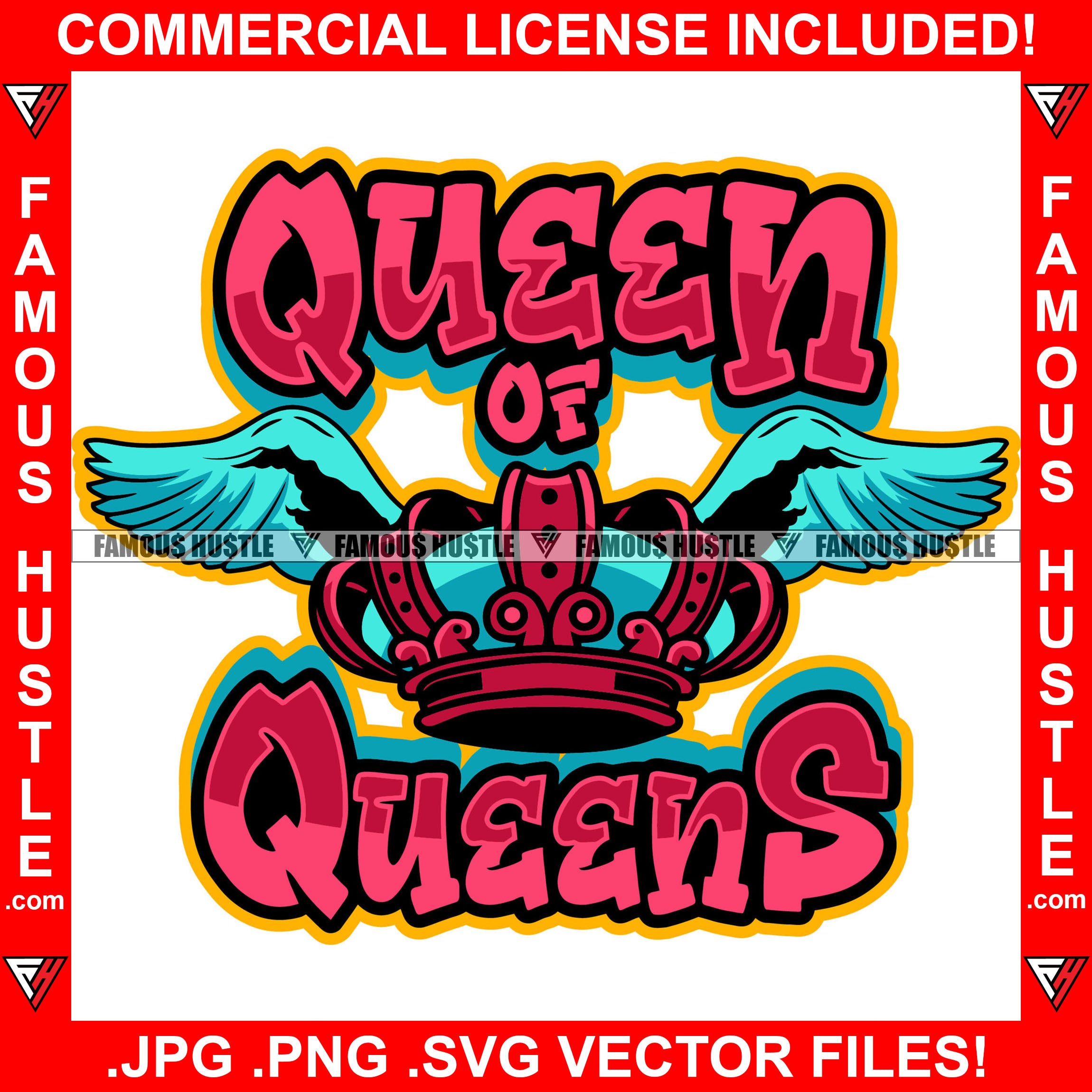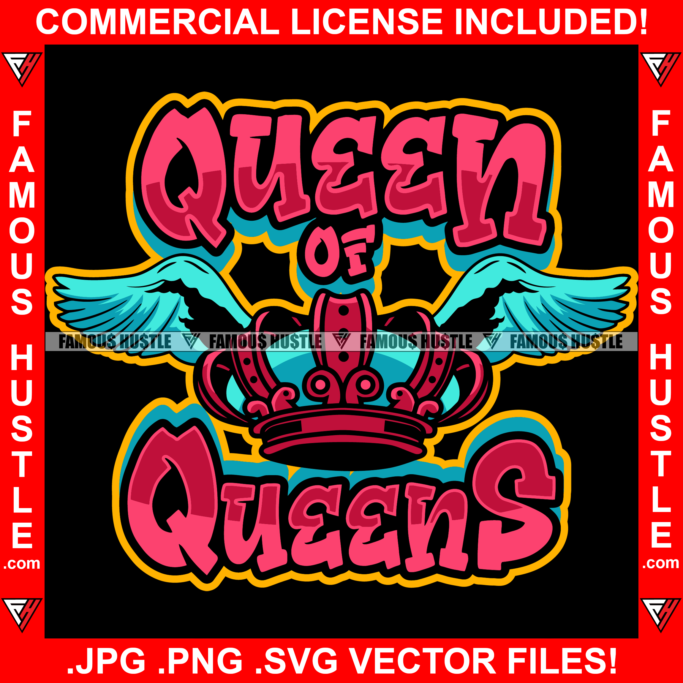Queen Of Queens Angel Wings Crown Famous Hustle Hip Hop Rap Plug Trap Hustler Hustling Sauce Dope Mob Slum Slime Goon Smoke Gang Quote Art Graphic Design Logo T-Shirt Print Printing JPG PNG SVG Vector Cut File
