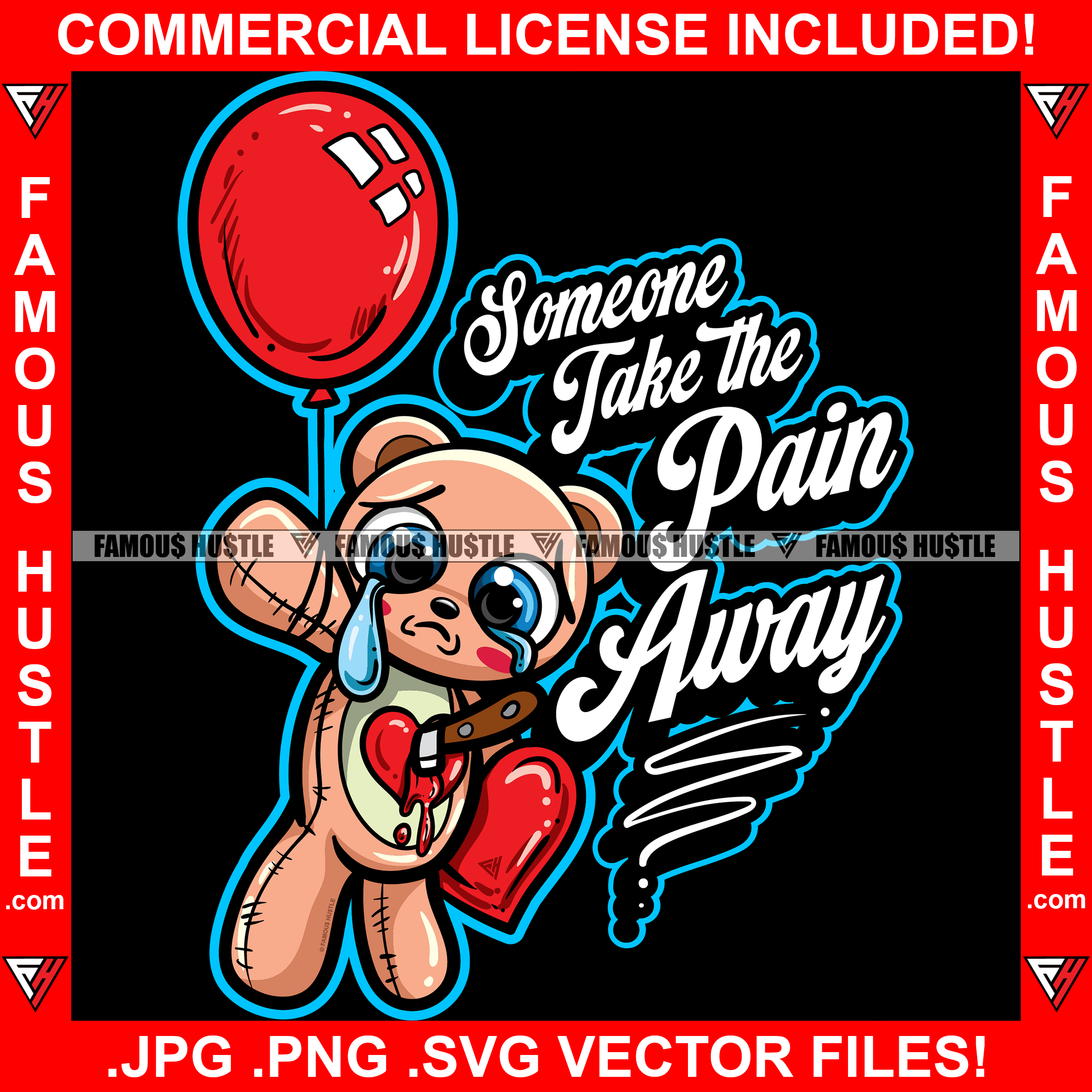 Someone Take The Pain Away Broken Heart Female Crying Tear Puddle Female Teddy Bear Tears In Eyes Holding No Love Red Heart Heartless Relationship Knife Balloon Hip Hop Quote Art Graphic Design Logo T-Shirt Print Printing JPG PNG SVG Vector Cut File