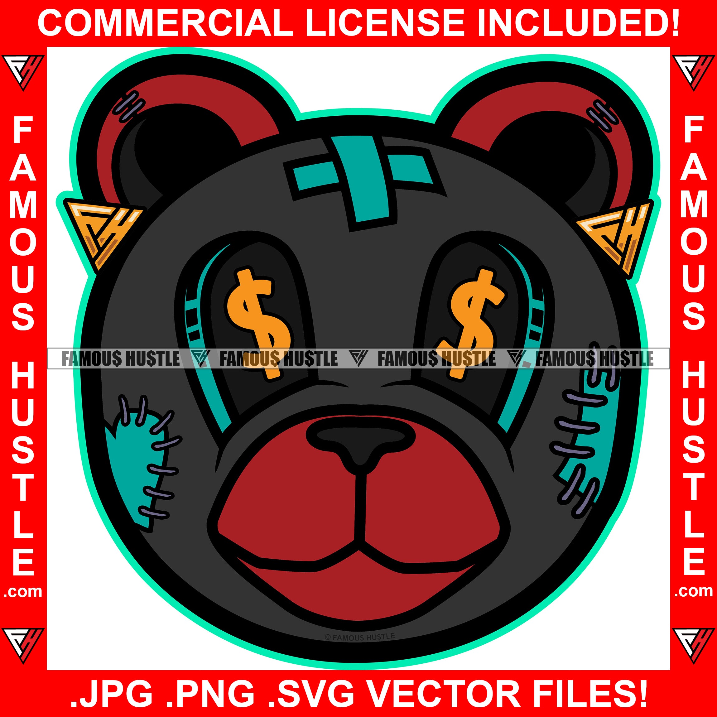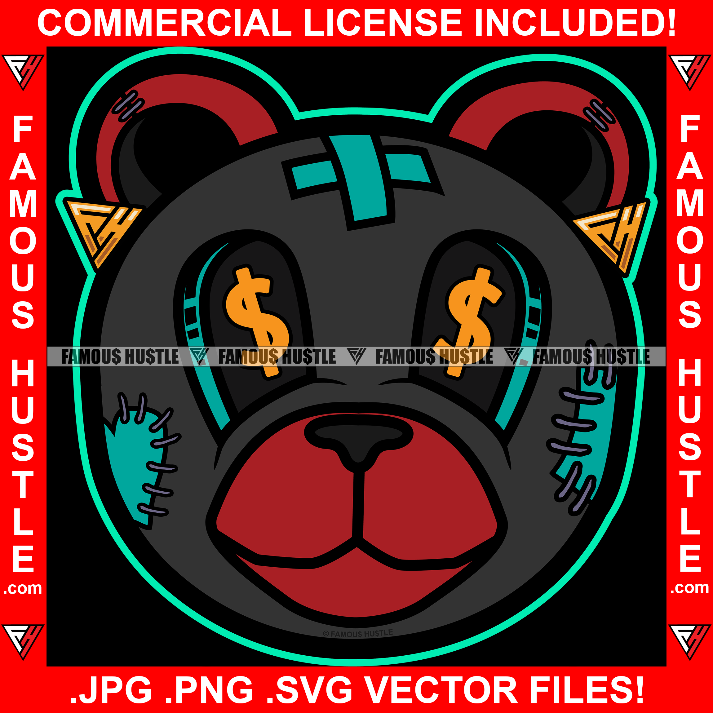 Born In The Streets Black Teddy Bear Dollar Sign Eyes Scar Face Hip Hop Rap Plug Trap Street Hood Ghetto Swag Thug Famous Hustle Baller Trapper Art Graphic Design Logo T-Shirt Print Printing JPG PNG SVG Vector Cut File