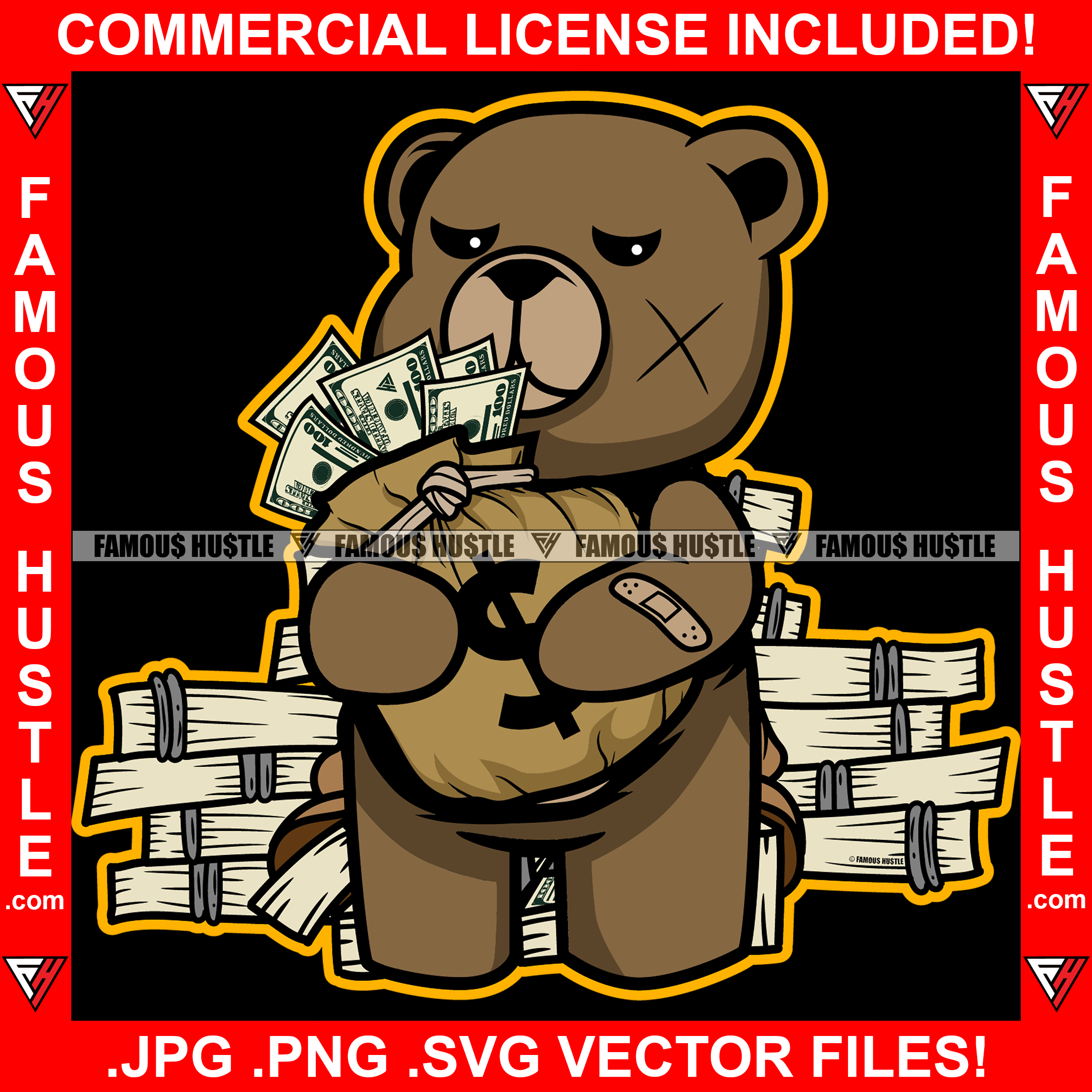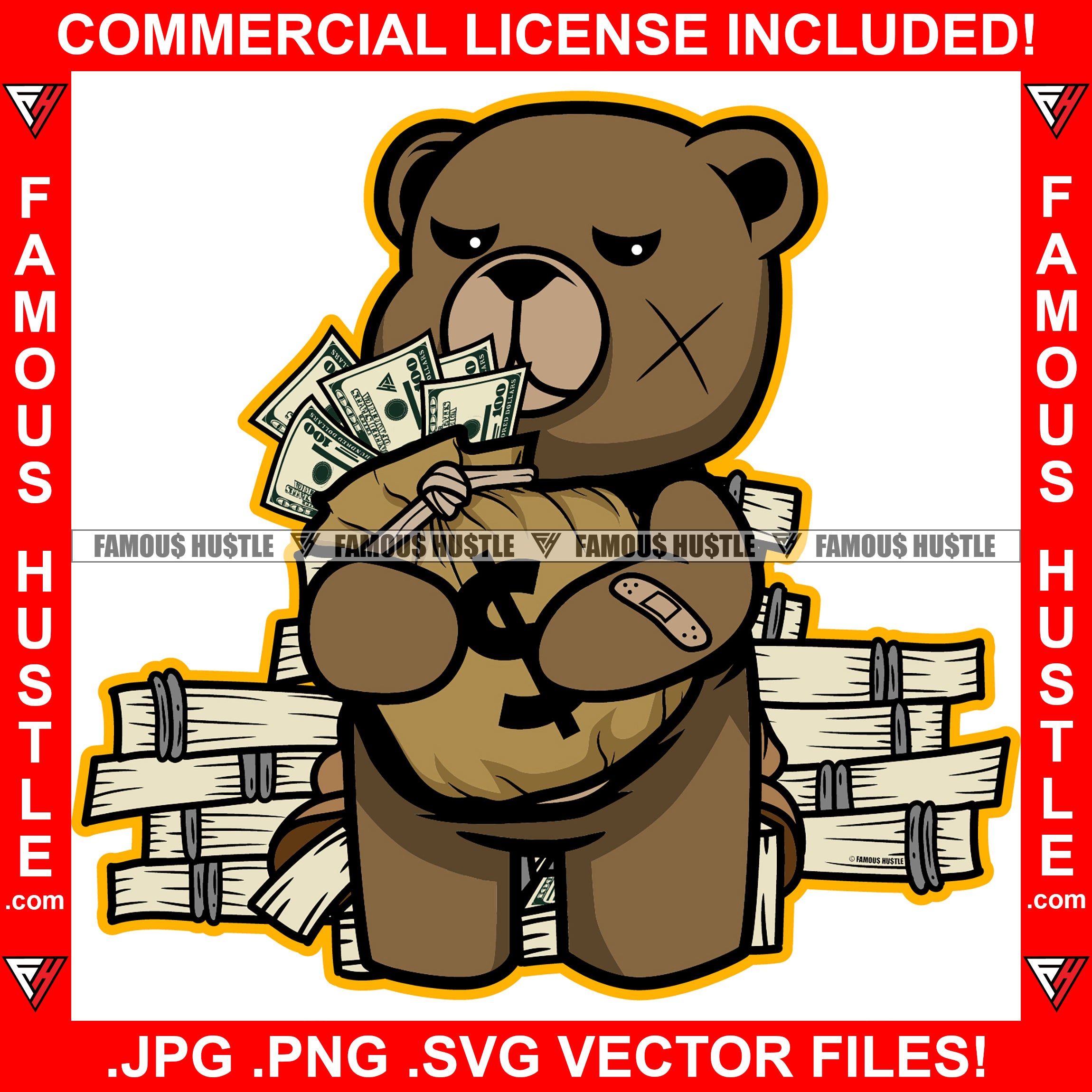 Bag Religion Teddy Bear Scar Angry Face Cash Money Bab Bundles Hip Hop Rap Rapper Plug Trap Street Hood Ghetto Swag Thug Hustler Hustling Famous Hustle Baller Trapper Art Graphic Design Logo T-Shirt Print Printing JPG PNG SVG Vector Cut File