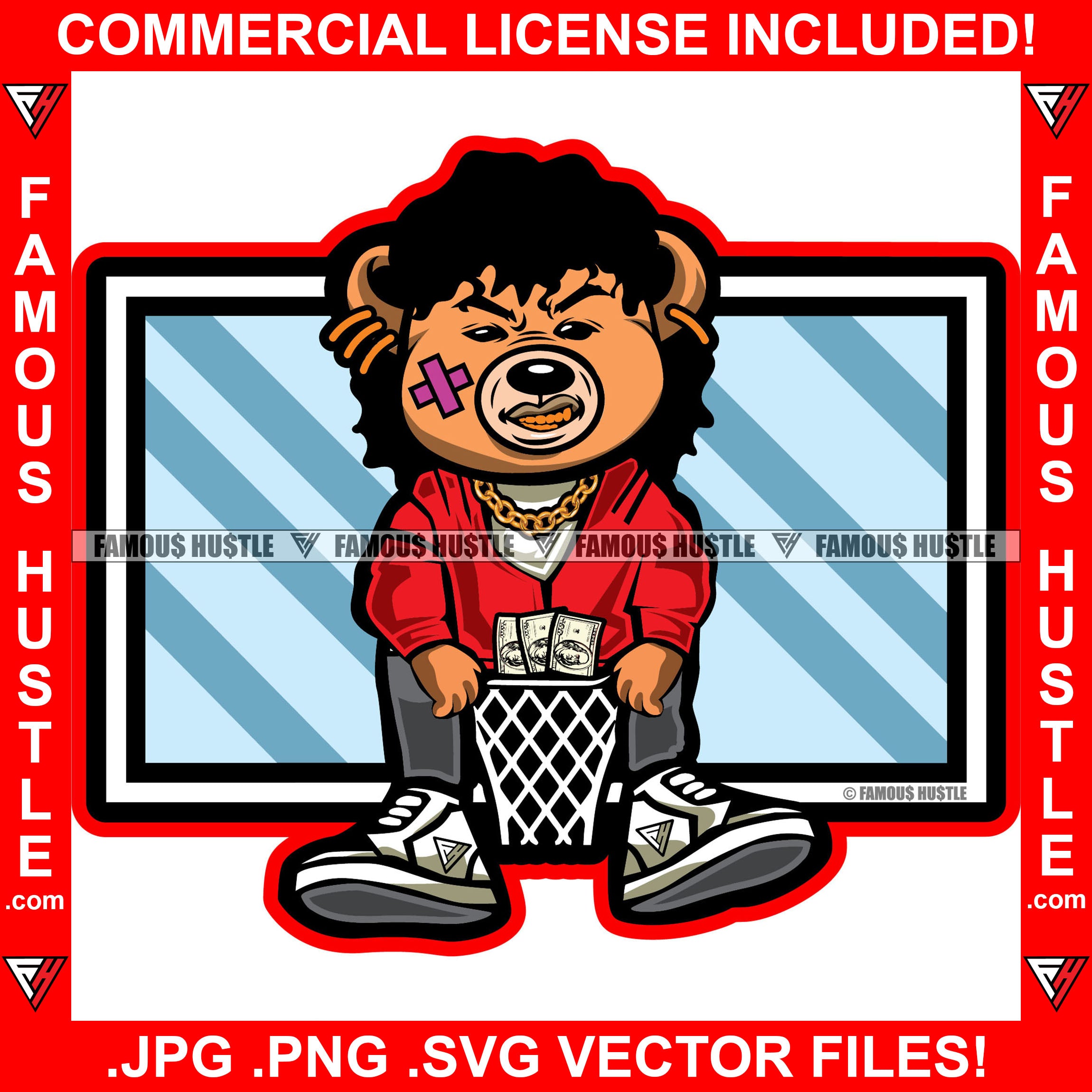 Ball Til I Fall Gangster Bandage Scar Face Teddy Bear Letter School College Jacket Basketball Goal Holding Cash Money Famous Hustle Hip Hop Rap Plug Trap Street Hustler Drip Art Graphic Design Logo T-Shirt Print Printing JPG PNG SVG Vector Cut File