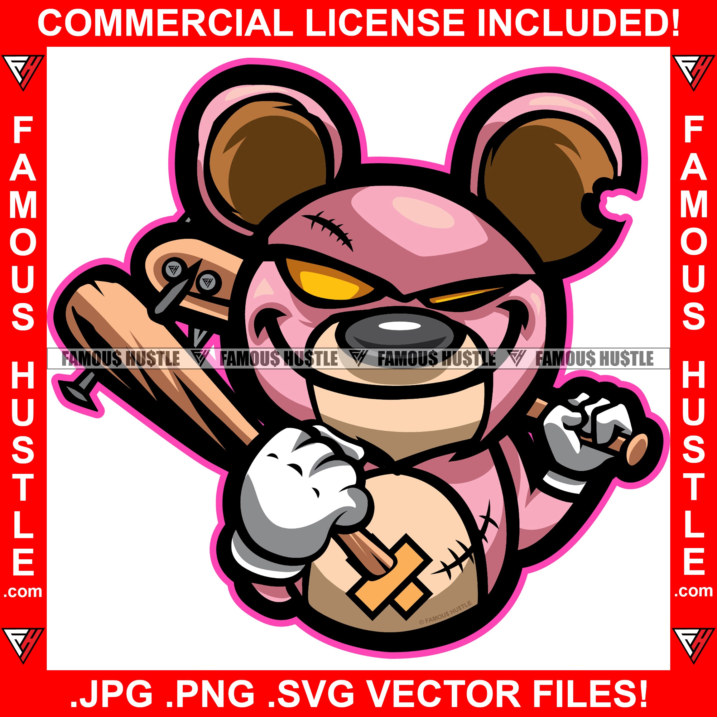Beast Teddy Bear Scar Mean Face Yellow Eyes Stitches Baseball Bat Hip Hop Rap Rapper Plug Trap Street Hood Ghetto Swag Thug Hustler Hustling Famous Hustle Baller Trapper Art Graphic Design Logo T-Shirt Print Printing JPG PNG SVG Vector Cut File
