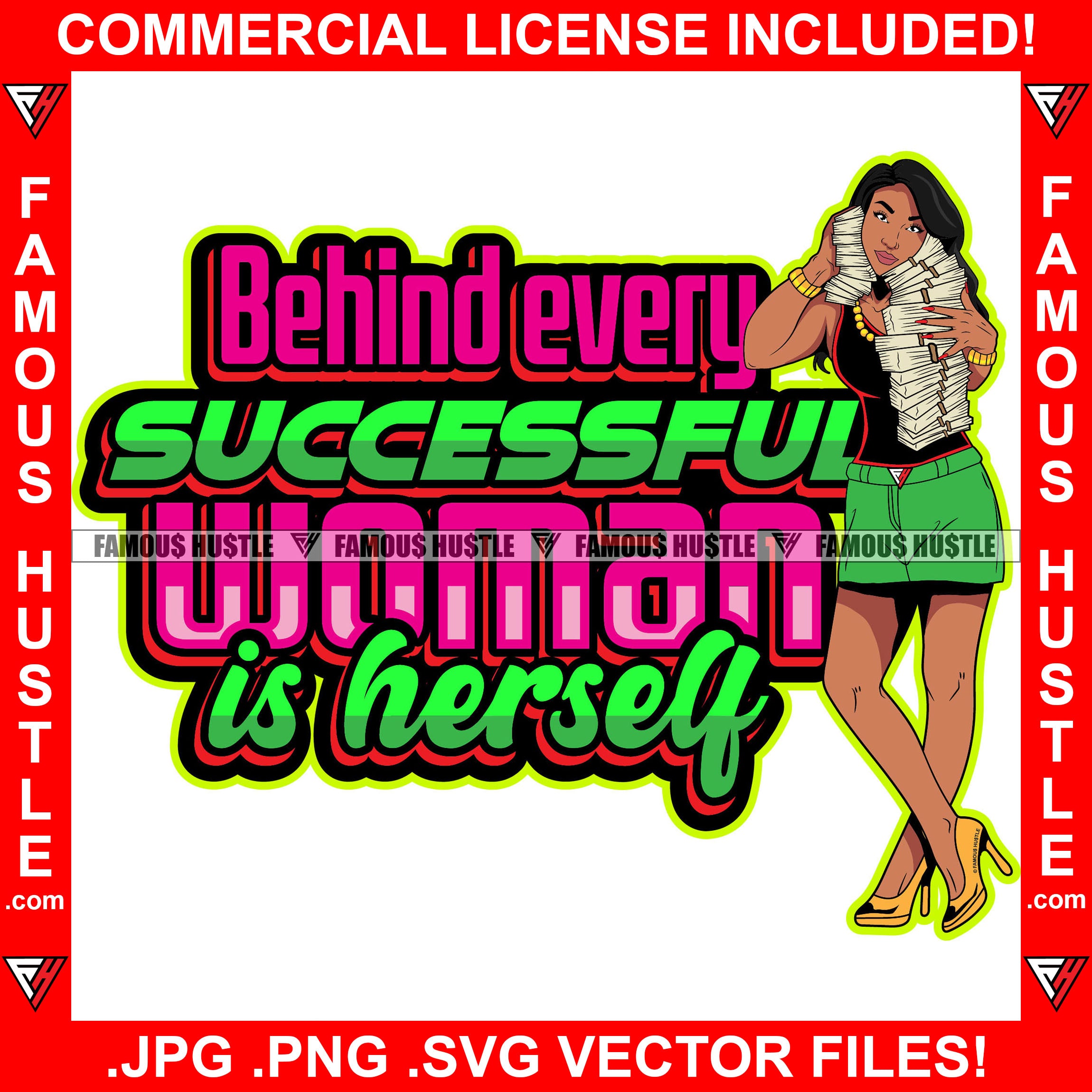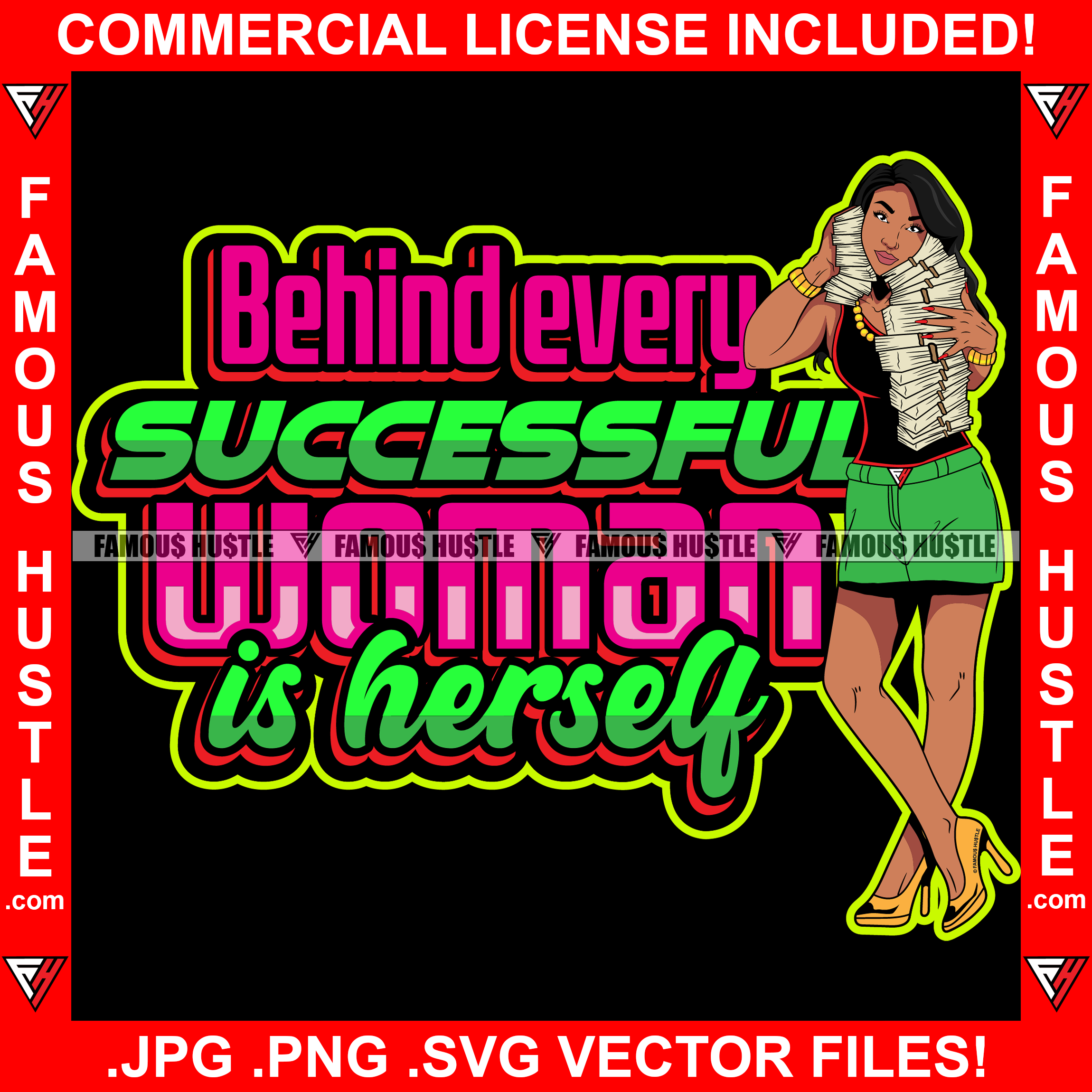 Behind Every Successful Women Is Herself Sexy Gangster Lady Female Cash Money Bundles Gold Jewelry High Heels Hip Hop Rap Plug Trap Street Hood Ghetto Hustling Famous Hustle Quote Art Graphic Design Logo T-Shirt Print Printing JPG PNG SVG Vector Cut File