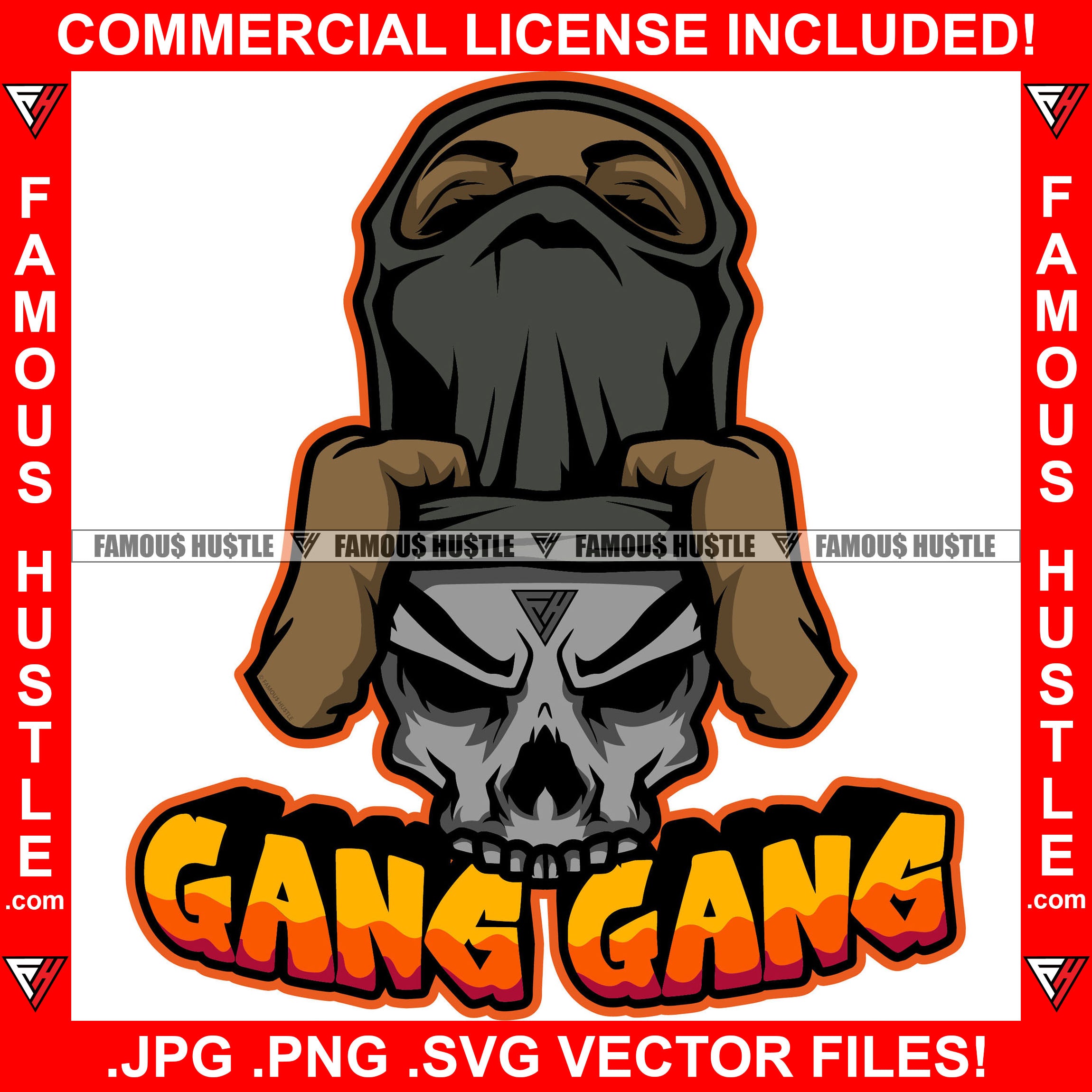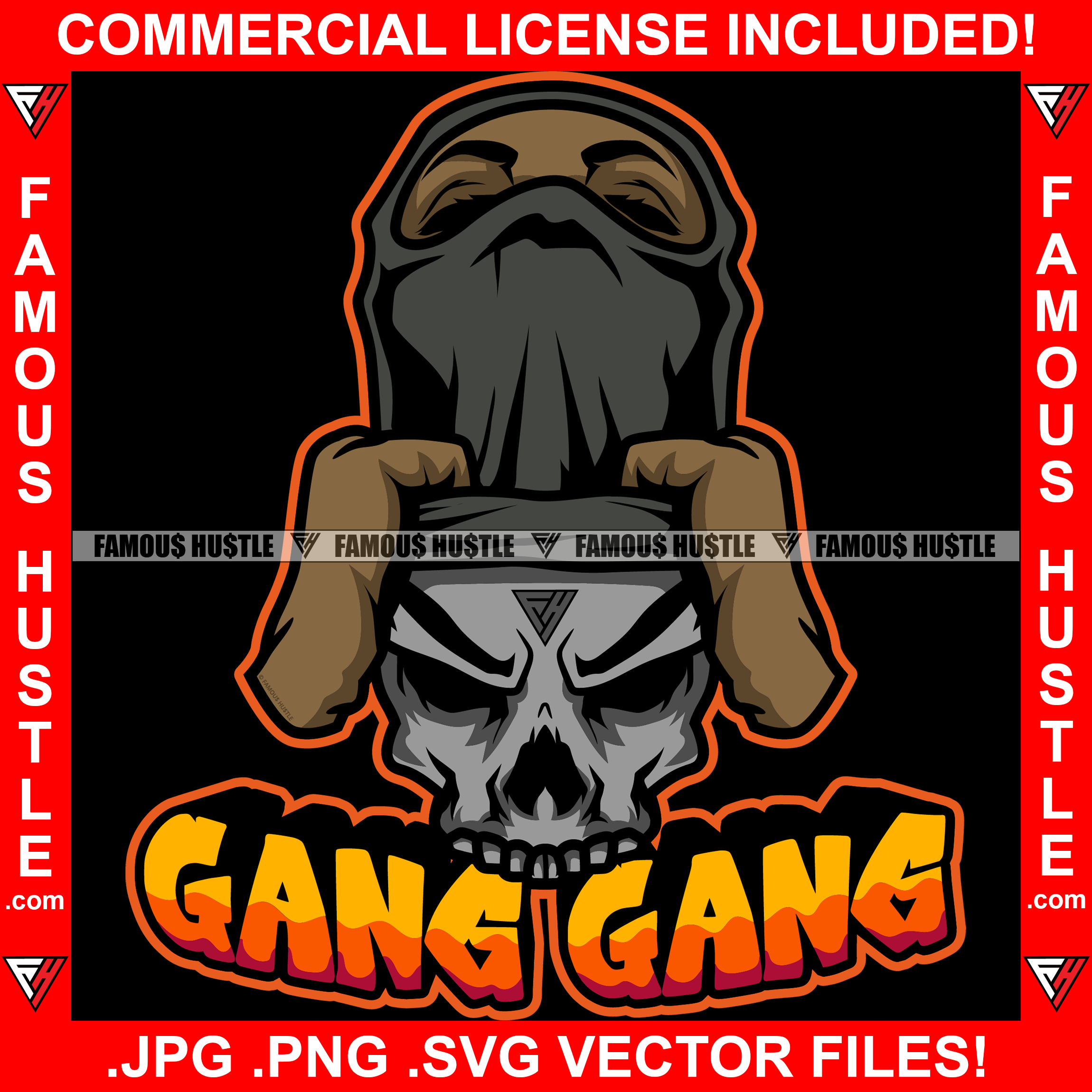 Gang Gang Black Man Ski Mask Skeleton Face Coming Out Mask Horror Hip Hop Rap Rapper Plug Trap Street Hood Ghetto Thug Hustler Flex Drip Famous Hustle Quote Art Graphic Design Logo T-Shirt Print Printing JPG PNG SVG Vector Cut File