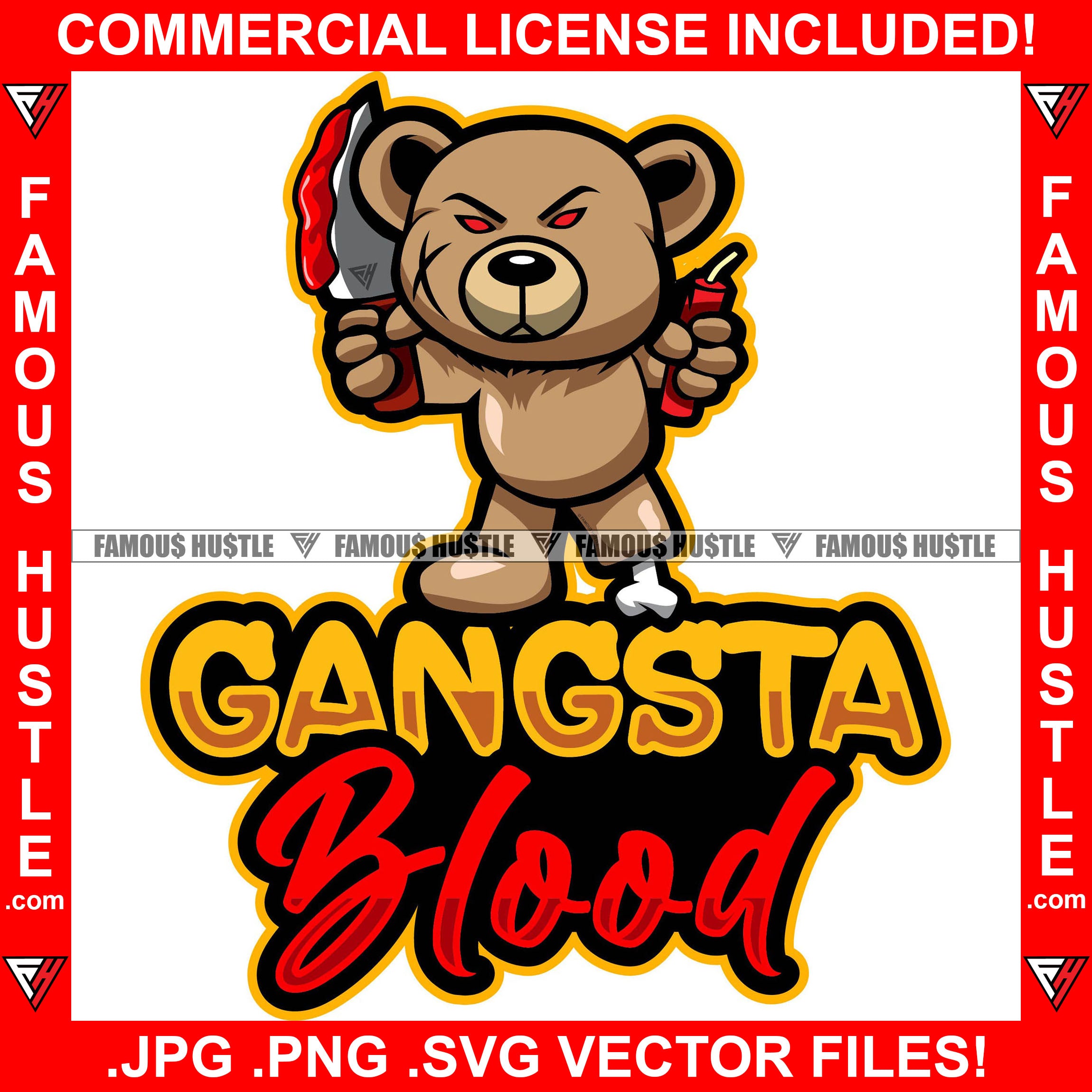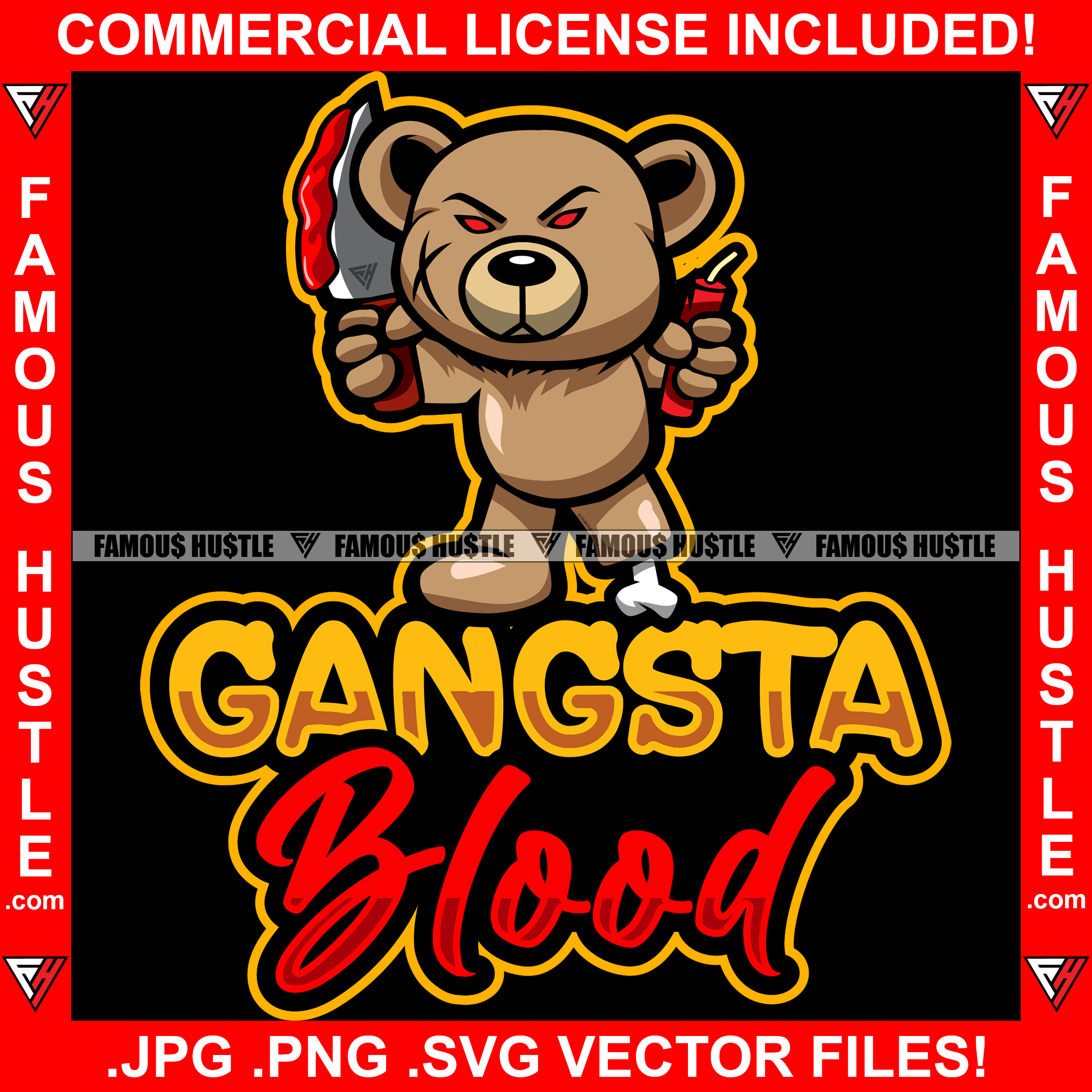Gangsta Blood Gangster Horror Teddy Bear Scar Face Red Eyes Bloody Knife Dynamite One Leg Bone Hip Hop Rap Plug Trap Street Hood Thug Hustler Hustling Famous Hustle Quote Art Graphic Design Logo T-Shirt Print Printing JPG PNG SVG Vector Cut File