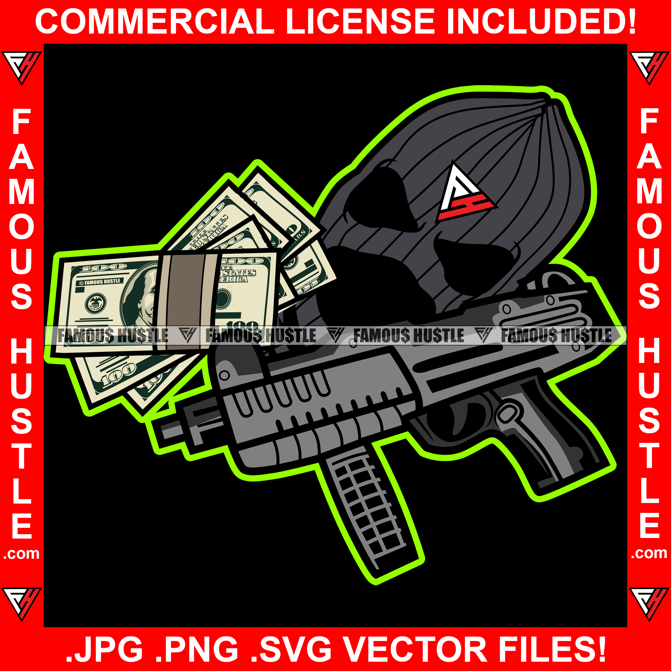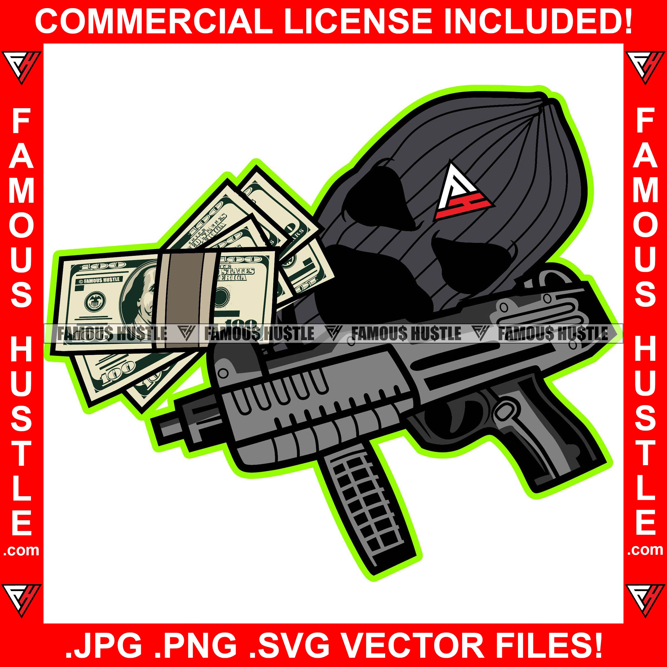 Gangster Black Ski Mask Machine Gun Cash Money Bundles No Eyes Hip Hop Rap Rapper Plug Trap Street Hood Ghetto Swag Thug Hustler Hustling Famous Hustle Baller Trapper Quote Art Graphic Design Logo T-Shirt Print Printing JPG PNG SVG Vector Cut File