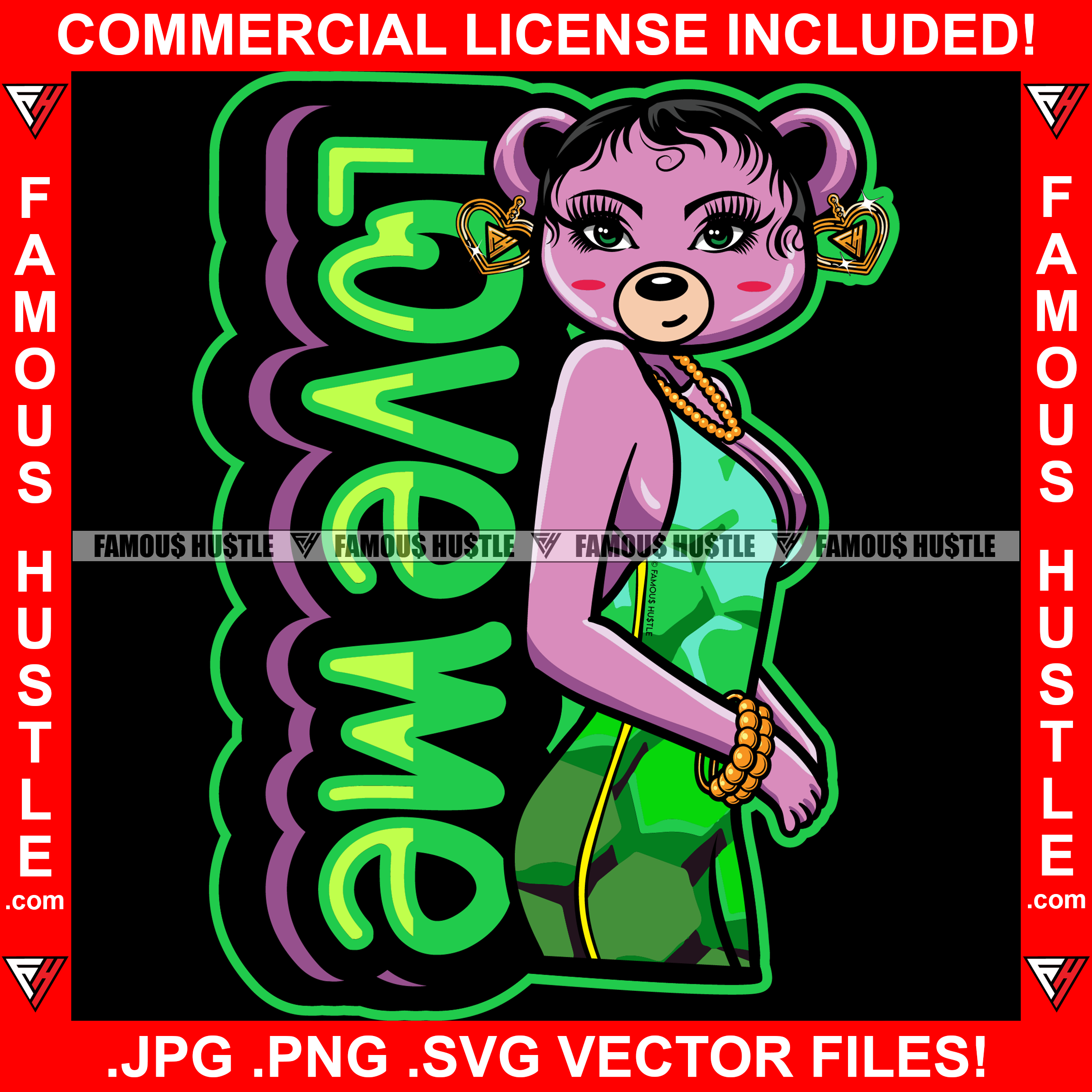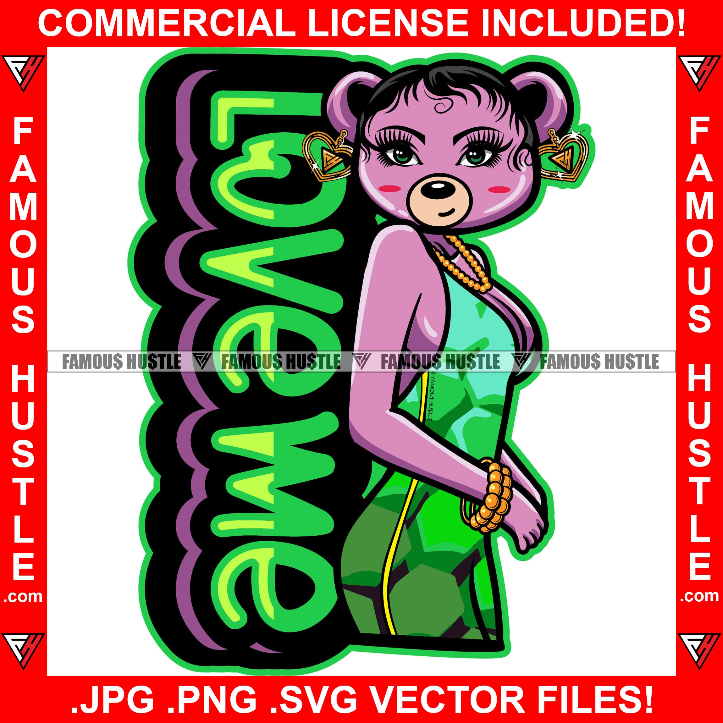Love Me Sexy Female Teddy Bear Wearing Hot Green Shinny Short Dress Hair Gold Jewelry Chain Pretty Hip Hop Swag Hustling Savage Flex Drip Famous Pinup Pin Up Quote Art Graphic Design Logo T-Shirt Print Printing JPG PNG SVG Vector Cut File