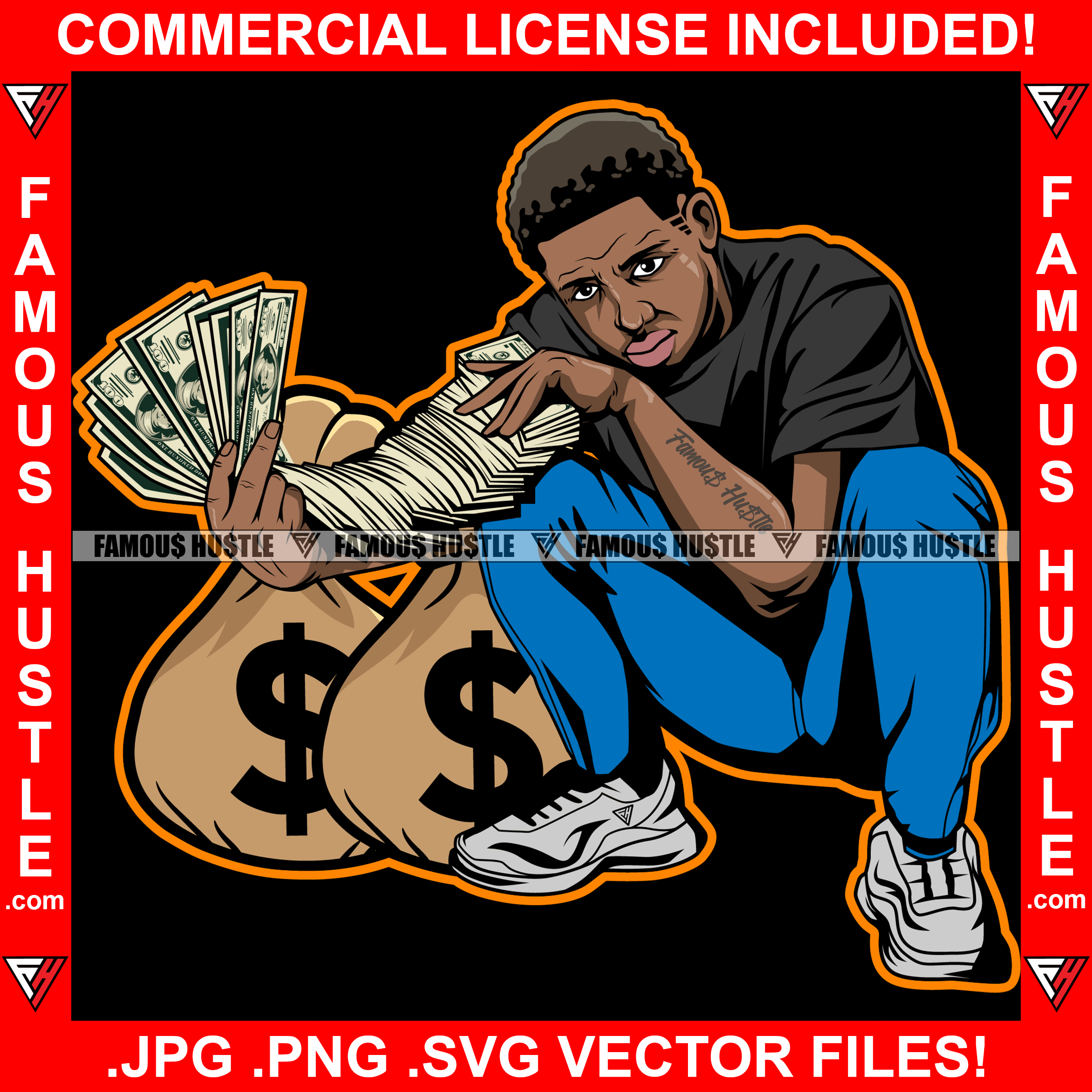 Mind On My Money Gangster Black Man Cash Bags Money Spread Arm Sneakers Hip Hop Rap Plug Trap Street Hood Ghetto Swag Thug Hustler Hustling Famous Hustle Baller Trapper Art Graphic Design Logo T-Shirt Print Printing JPG PNG SVG Vector Cut File