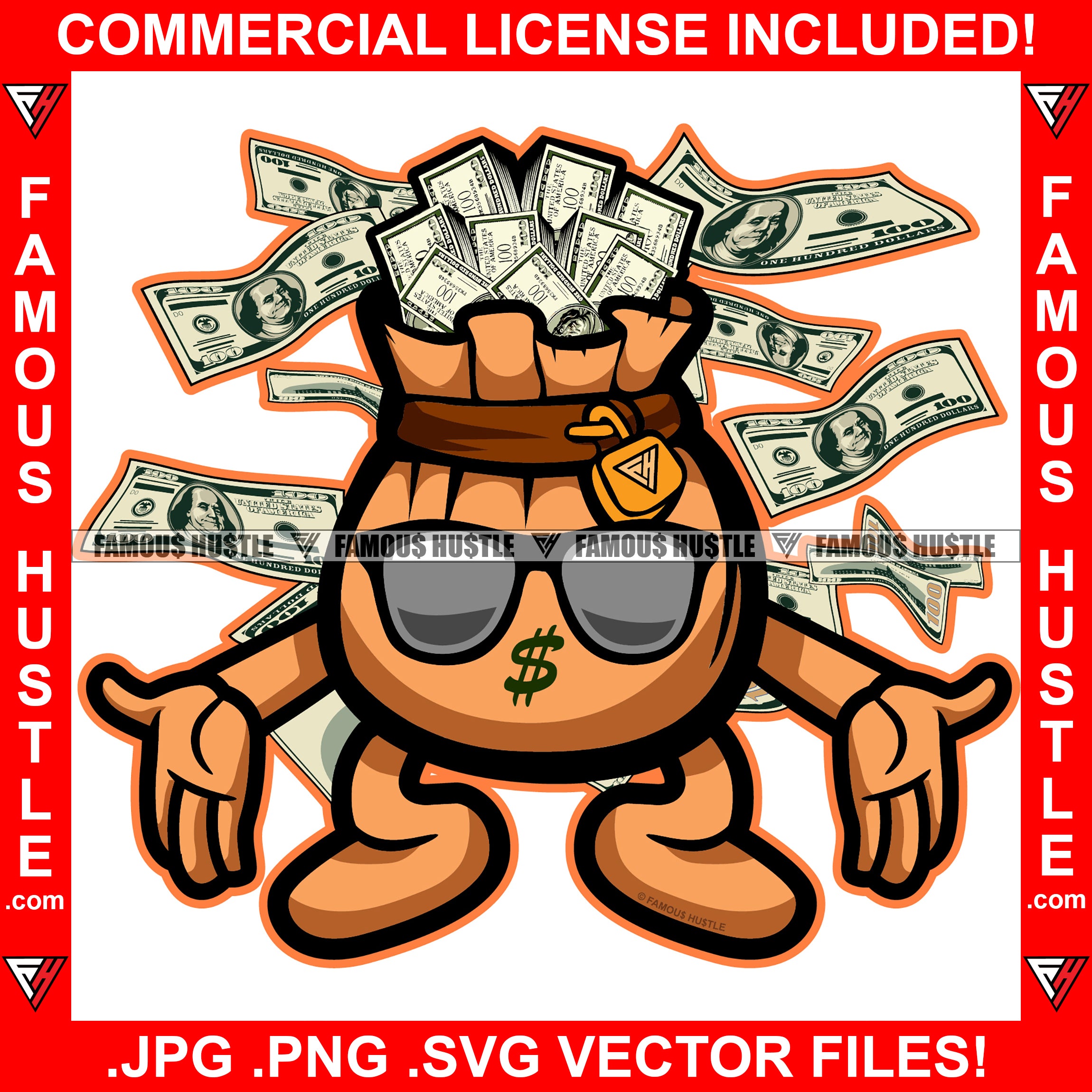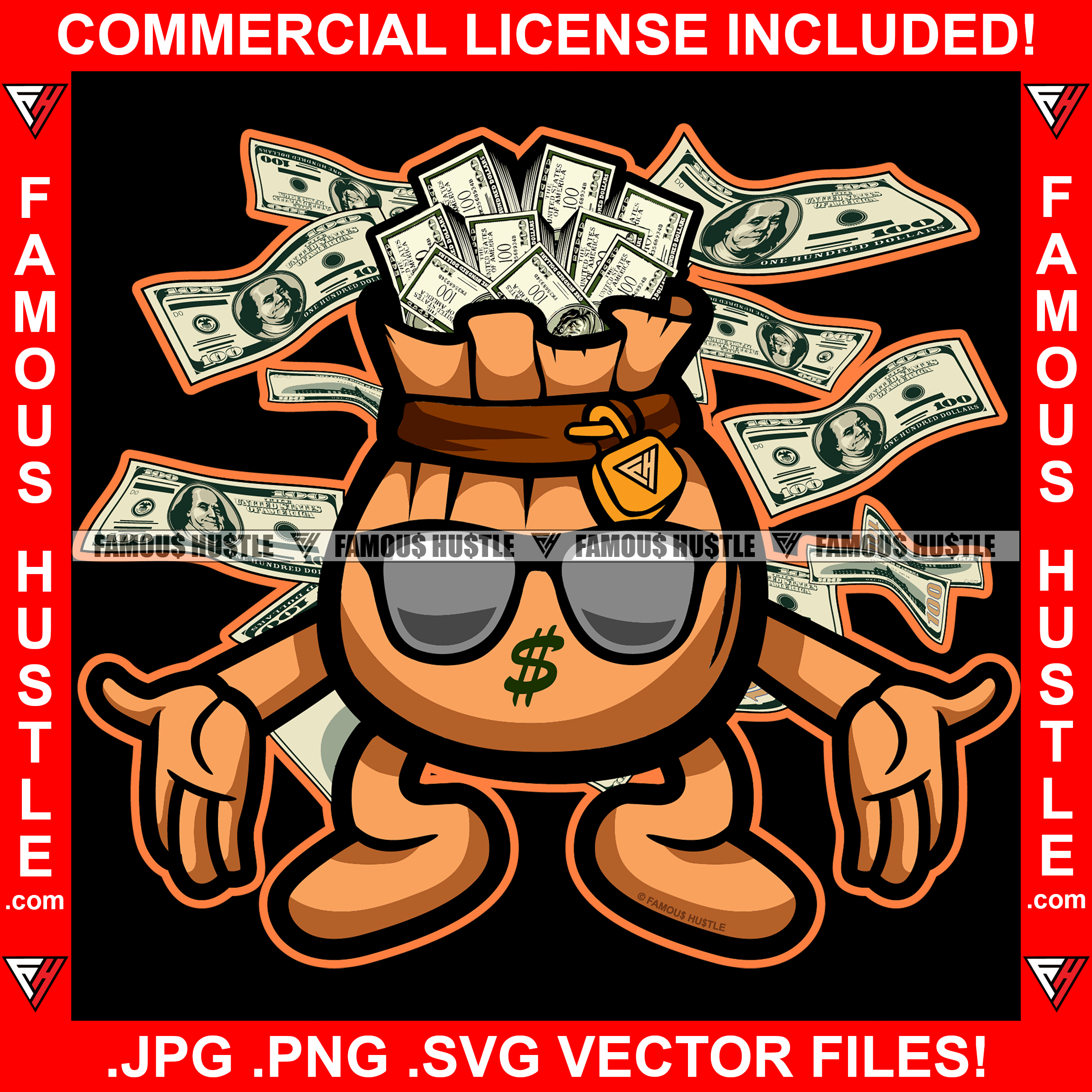 Money Magnet Bag Gold Lock Blackglasses Cash Falling Hip Hop Rap Plug Trap Ghetto Swag Thug Hustler Hustling Famous Hustle Baller Trapper Art Graphic Design Logo T-Shirt Print Printing JPG PNG SVG Vector Cut File