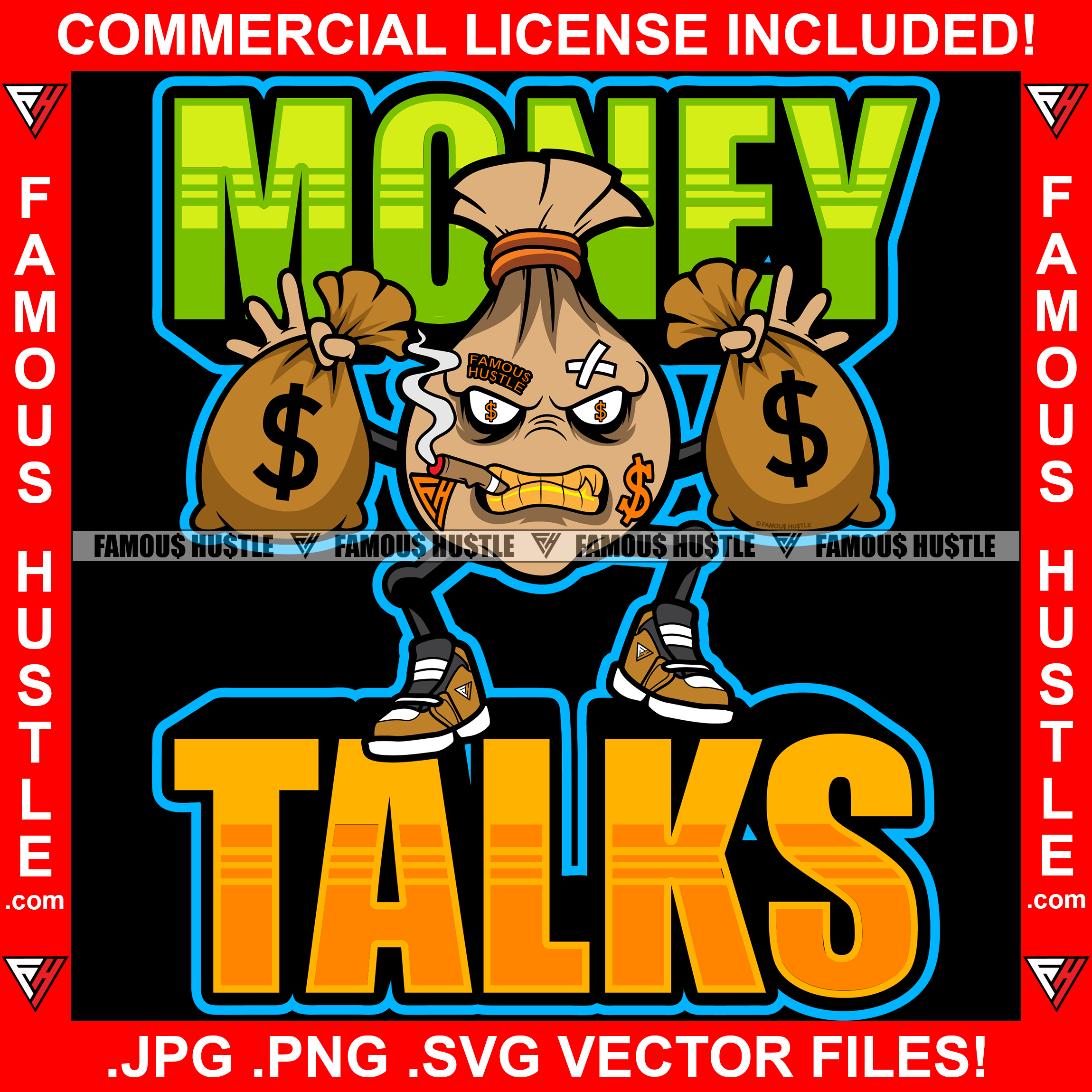 Money Talks Cash Bag Dollar Sign Gold Teeth White Eyes Mean Cigarette Smoking Scar Face Tattoo Rapper Plug Hood Ghetto Hustler Hustling Flex Drip Famous Quote Art Graphic Design Logo T-Shirt Print Printing JPG PNG SVG Vector Cut File