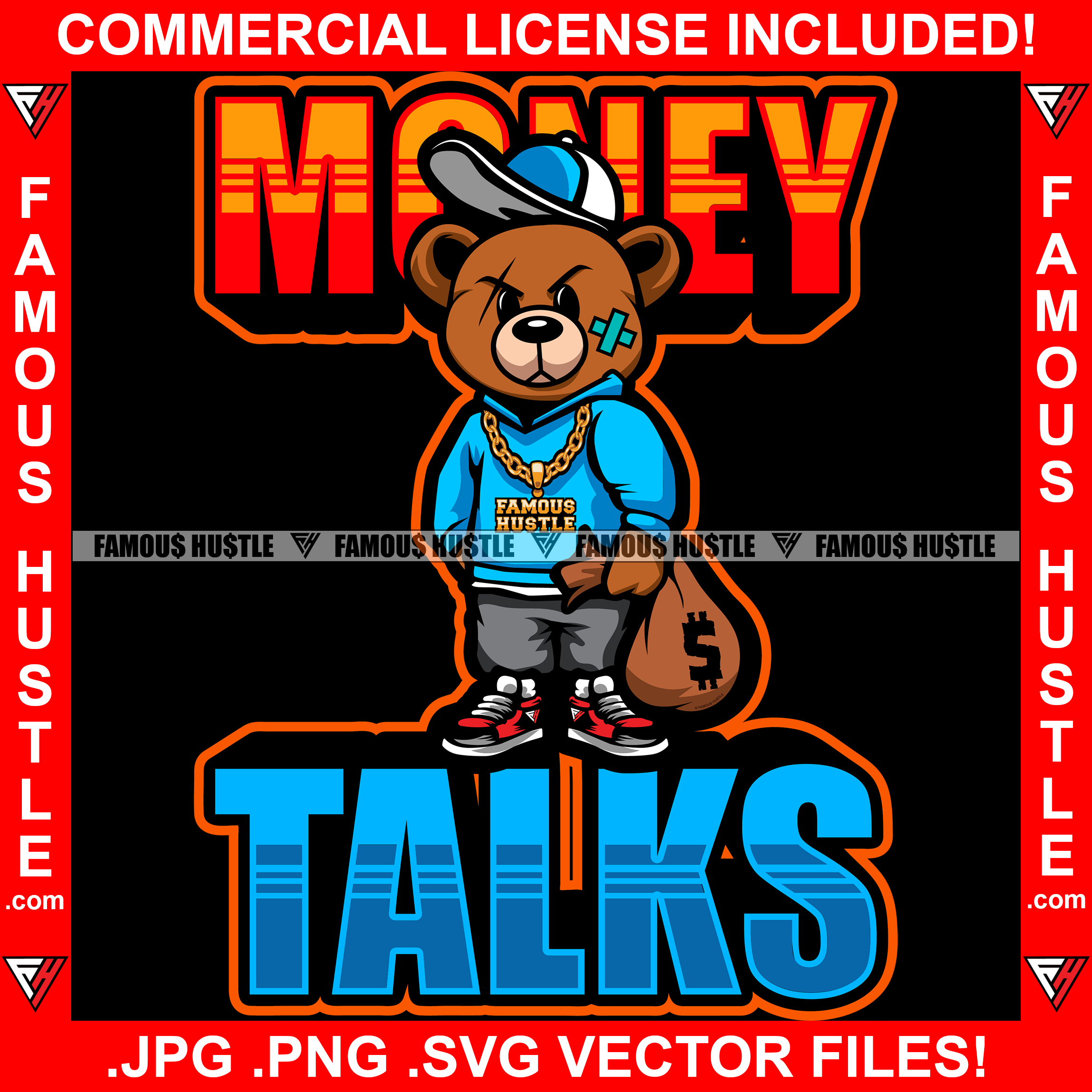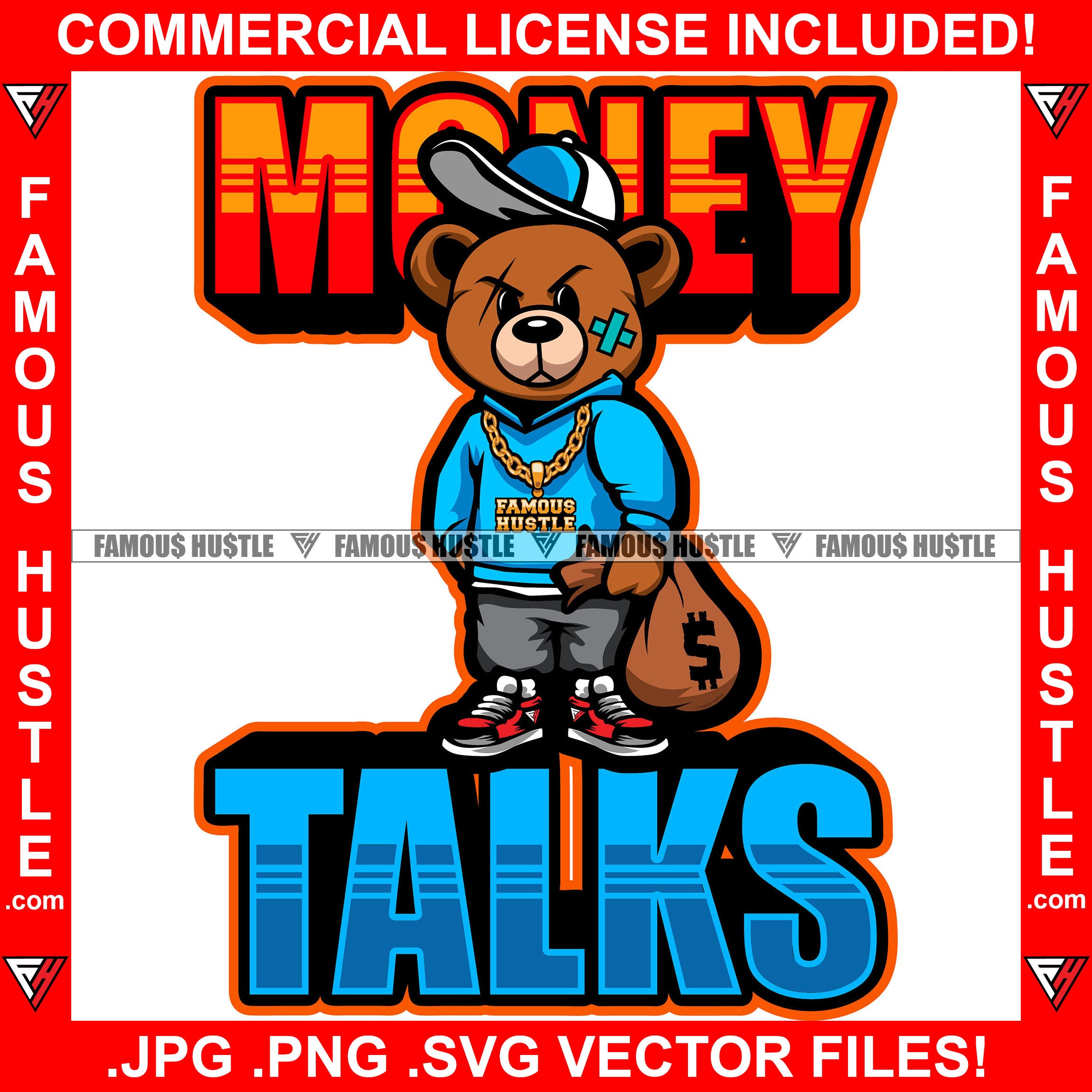 Money Talks Gangster Teddy Bear Angry Scar Face Bandage Gold Necklace Jewelry Cash Bag T-shirt Jeans Cap Sneaker Hip Hop Rap Trap Street Hood Thug Hustler Drip Famous Hustle Quote Art Graphic Design Logo T-Shirt Print Printing JPG PNG SVG Vector Cut File