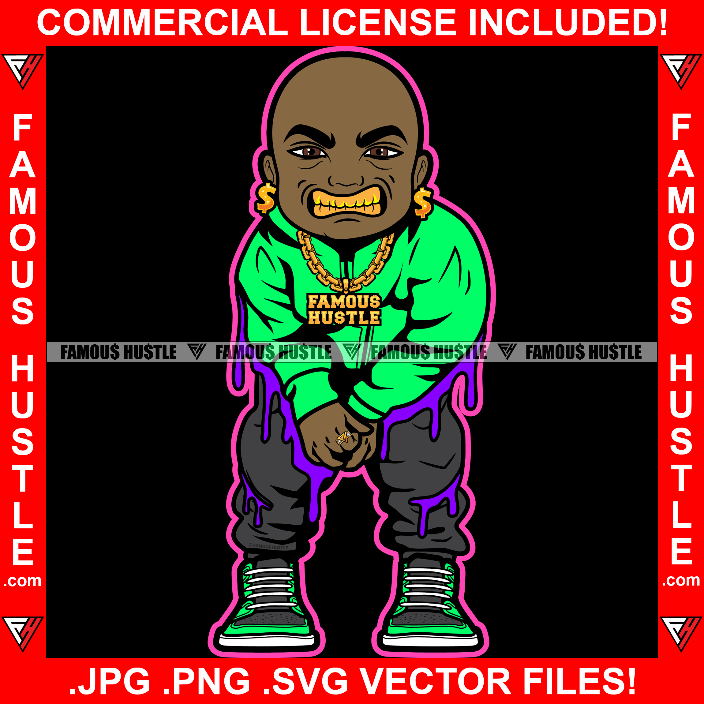 Sauce Dripping Drip Gangster Black Boy Bald Man Mean Smile Gold Teeth Necklace Dollar Sign Earrings Hip Hop Rap Plug Trap Street Hood Swag Thug Famous Hustle Baller Trapper Art Graphic Design Logo T-Shirt Print Printing JPG PNG SVG Vector Cut File