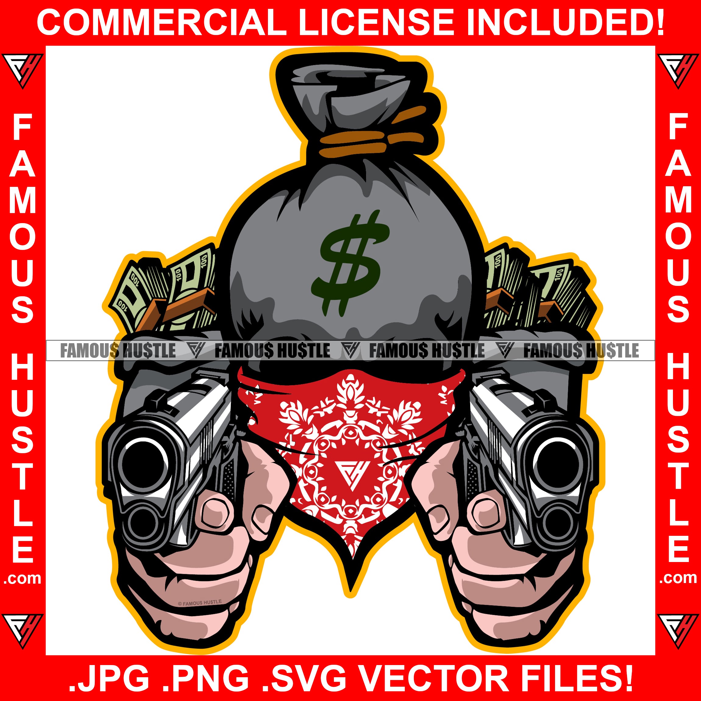 Savage Black Gangster Money Bag Cartoon Character Skull Face Mask Pistol Gun Cash Bags Hip Hop Trap Street Hood Ghetto Thug Hustler Famous Hustle Art Graphic Design Logo T-Shirt Print Printing JPG PNG SVG Vector Cut File