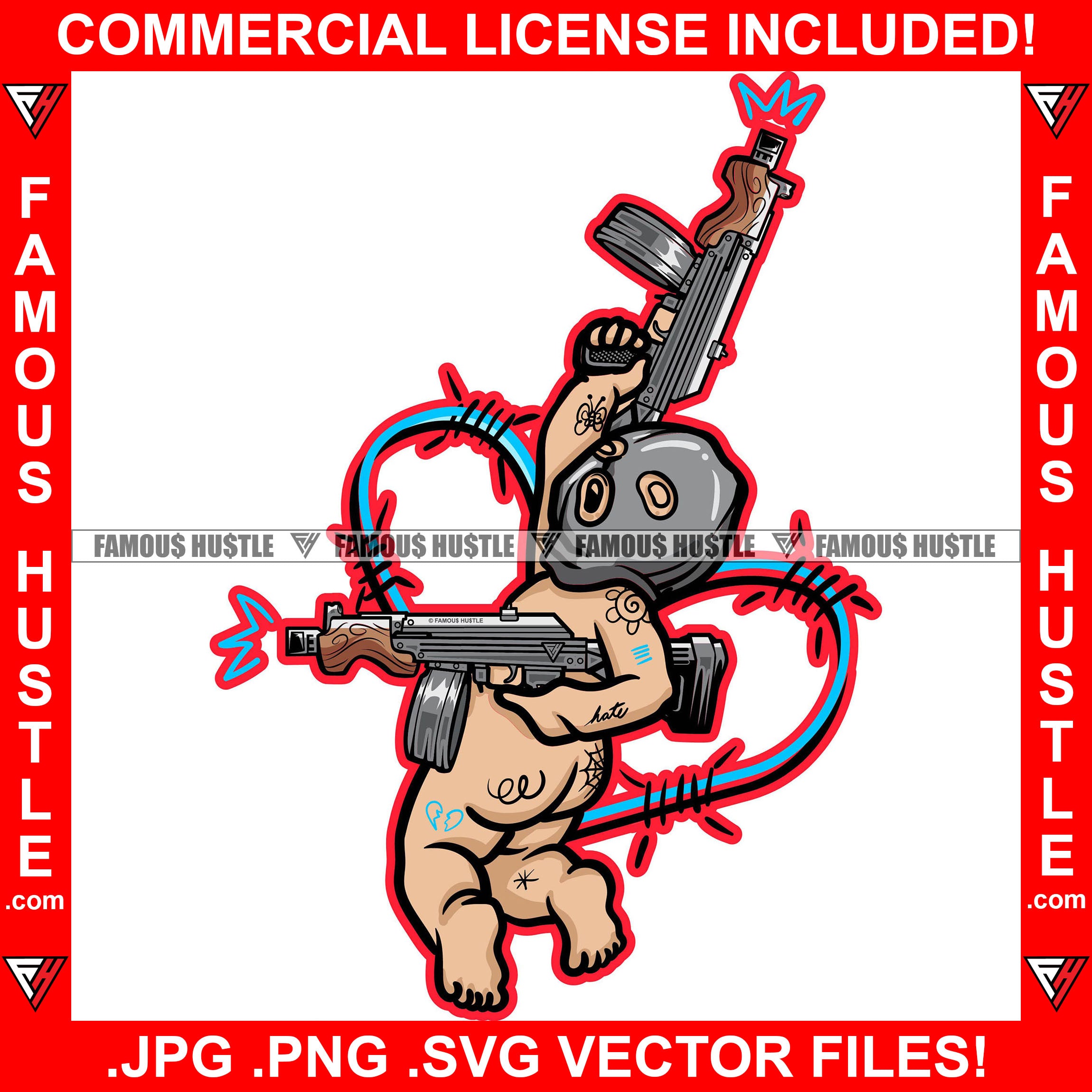 Trap Legend Ski Mask Baby Machine Guns Wires Body Tattoos Hip Hop Rap Rapper Plug Trap Street Hood Ghetto Swag Thug Hustler Hustling Famous Hustle Baller Trapper Art Graphic Design Logo T-Shirt Print Printing JPG PNG SVG Vector Cut File